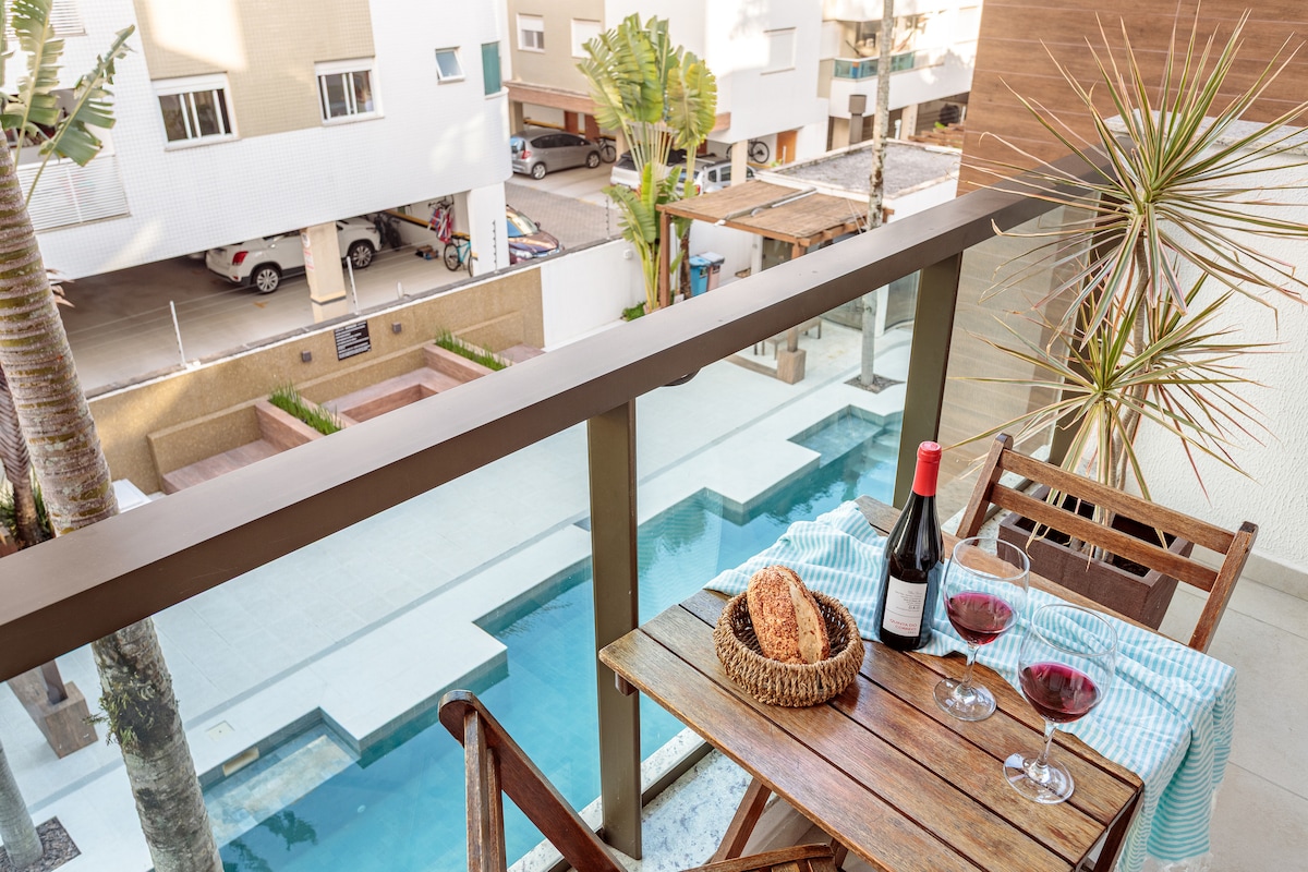 Loft duplex elegante, espaço amplo, iluminação natural, cozinha completa, estação home office e internet rápida. Possui vaga de garagem privativa. Internet rápida verificada: 1GB. Perfeito para casais, conforto para até 4 pessoas; seja em home office tranquilo ou dias de lazer confortáveis. A poucos passos da praia. Aproveite lazer com piscina com borda infinita, sauna e pequena academia. Um refúgio moderno com cuidado especial para cada hóspede.