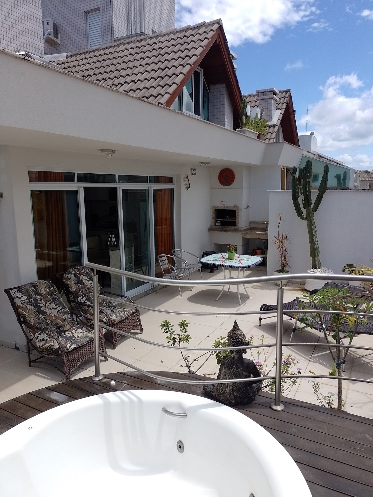 Luxury penthouse with total privacy, ocean view, jacuzzi, barbecue and large outdoor terrace in front of Campeche beach, one of the most beautiful beaches in Florianópolis! Spending your vacation at the Thai Beach Home Spa condo is like being at a 5 star resort! With a heated indoor pool, outdoor infinity pool, indoor and outdoor jacuzzis, gym, playground, an incredible common area! Central location near restaurants, bakeries, supermarkets and shops.