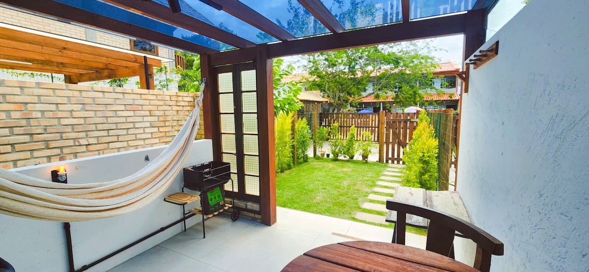 “Nossa Casinha no Campeche” será seu refúgio pelo tempo que quiser! Casa aconchegante, prática e com churrasqueira, a 50 metros de mercado convencional, mercado orgânico, padaria, restaurantes e ponto de ônibus. Gramado amplo que pets e crianças adoram, fogo de chão e em alguns períodos do ano há frutas no quintal! 15 minutos do aeroporto. 5 minutos de shopping do sul da ilha. 8 minutos do terminal de integração.