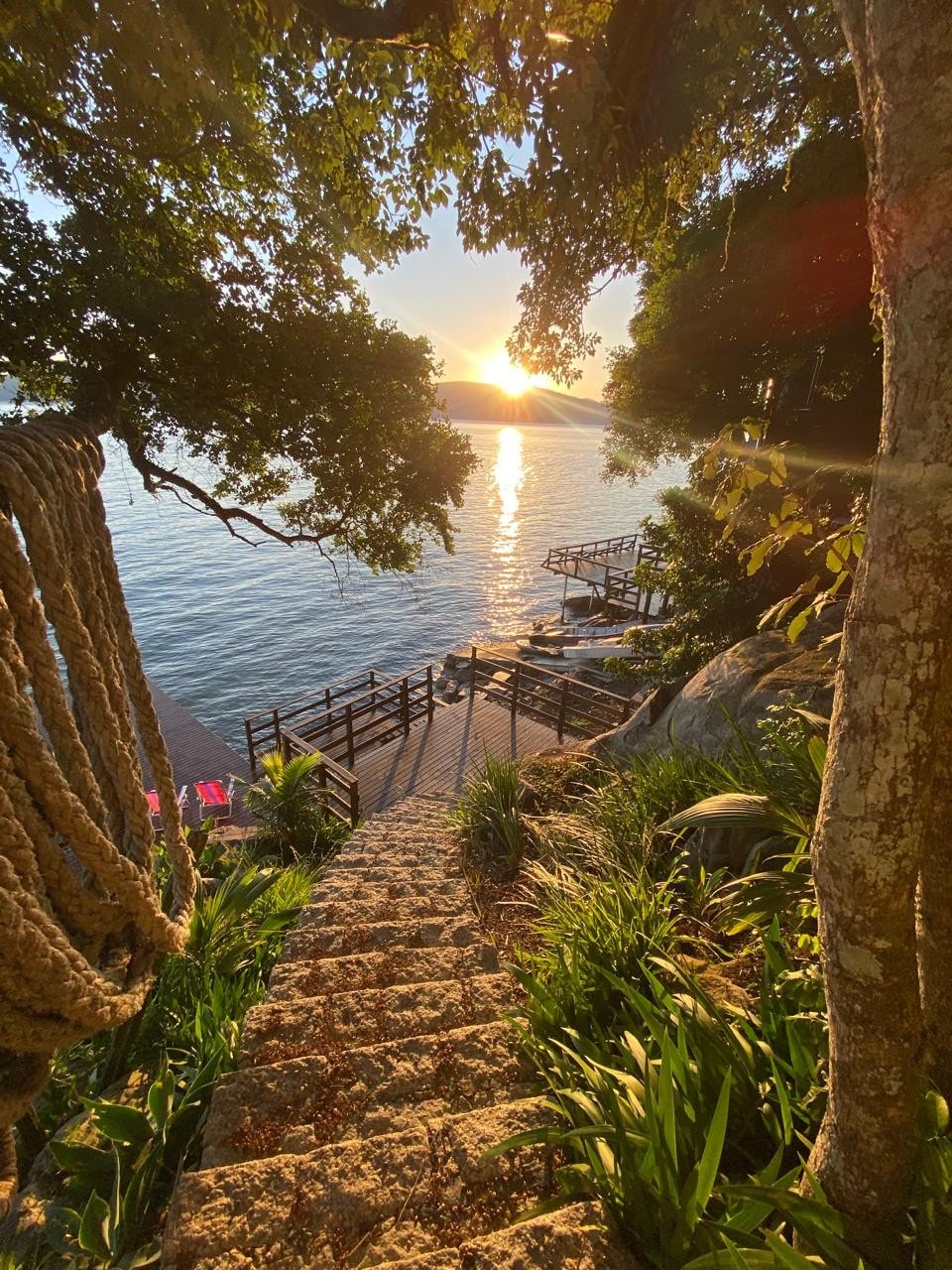 Observatório natural no alto da montanha com uma arquitetura em simbiose com a natureza. Visual deslumbrante para a Lagoa e o Mar, com nascer do sol e da lua. Fogueira para ver as estrelas. Conforto com requinte e privacidade. Rodeada pela mata atlântica, águas da cachoeira, piscina natural com água da nascente. Acesso somente via barco (Lindo trajeto pelas águas da Lagoa-ca.15 min.) ou via trilha. Check in presencial. Um paraíso espera por você!