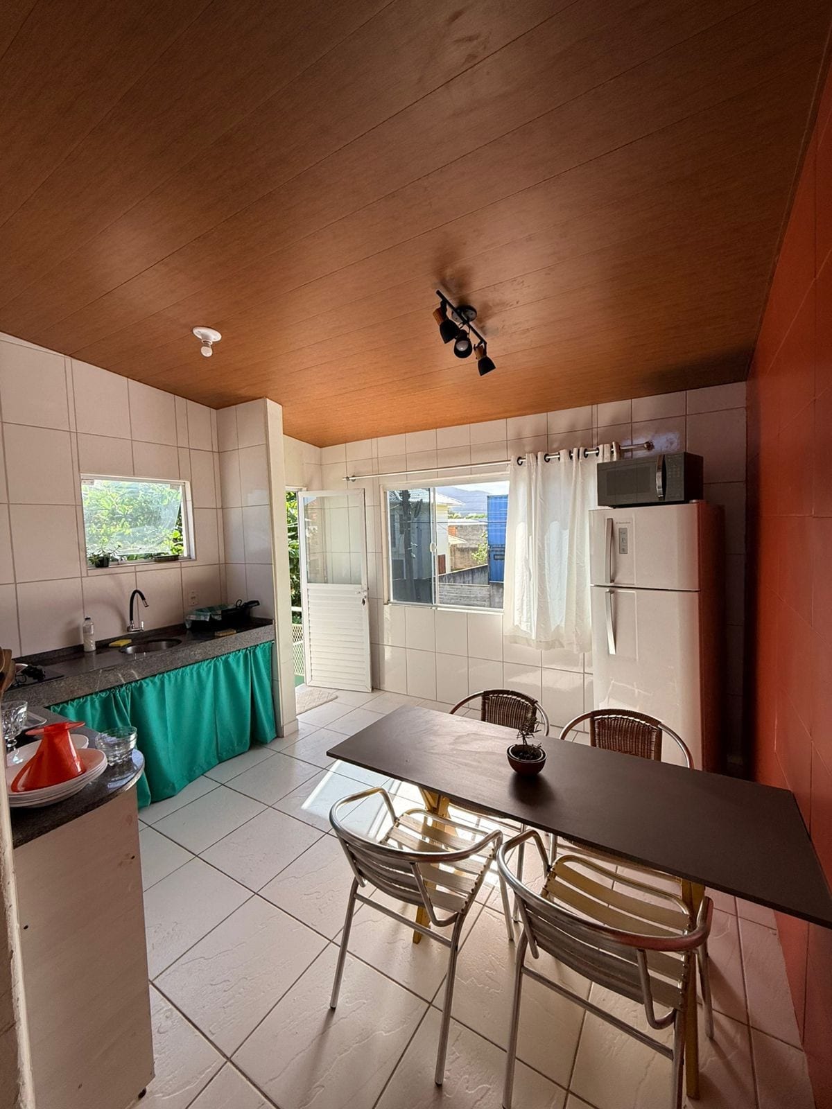 Apto em casa de dois andares cercada de verde e muito iluminada. Entrada em separado. Sotão com dormitório auxiliar. Geladeira, conjugado pia/fogão, wi-fi. Supermercado, farmácia, comércio perto, vaga no pátio p até 2 carros. O espaço recebe duas pessoas, mas que poderão estar acompanhadas de até duas crianças ( até dez anos) sem custo. Mais que 2 adultos, taxa adicional a combinar. Colchões a mais serão fornecidos conforme necessário. O horário de silêncio tem ser respeitado.