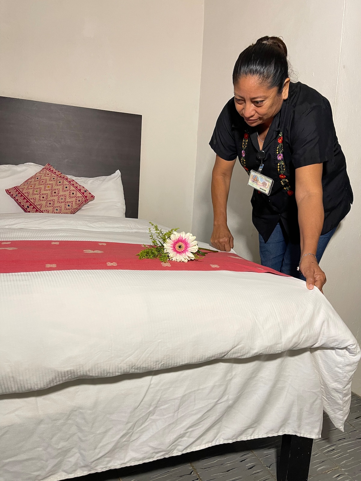 Esta habitación de hotel ha sido diseñada para darle la mayo comodidad y privacidad. Está ubicada en un nuevo Hotel boutique a pocos pasos del malecón y del centro de Campeche. La habitación cuenta con una cama matrimonial, WIFI, baño privado, agua caliente, TV con cable y Netflix. La alberca esta climatizada y es perfecta para relajarse y disfrutar. Es el lugar perfecto para viajeros que buscan un lugar limpio y seguro con un diseño de lujo.