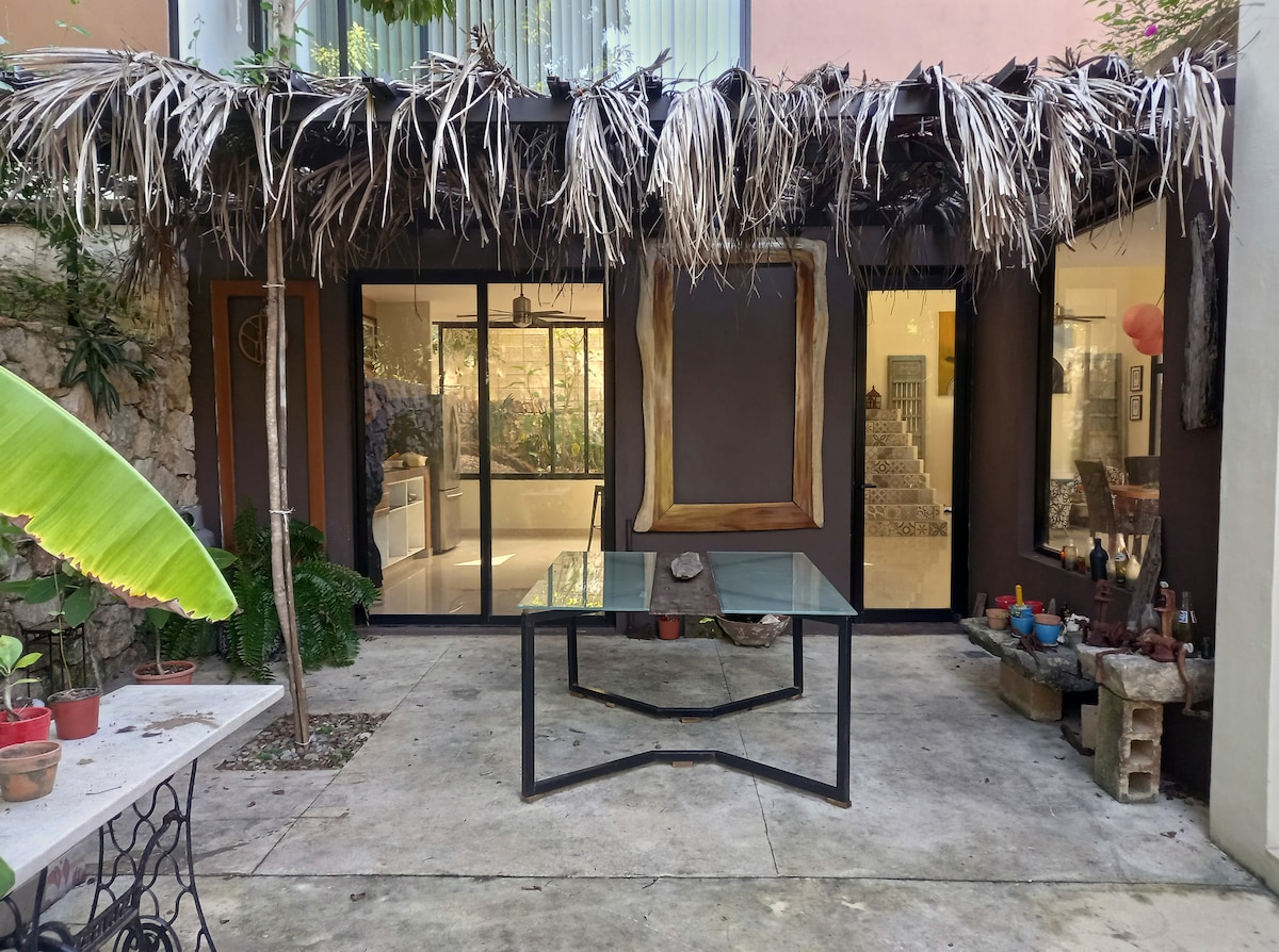 Casa Solario was designed to enjoy the experience of living in the heart of the city. It is a spacious and welcoming space, with floors and walls covered with chukum (resin extracted from a tree in the region), handcrafted decorative details made of liana and palm, pink-purple wood furniture (Maculis) and a terrace full of agaves and vines for a stay full of calm. Walking you can enjoy colorful afternoons, the evening breeze and magnificent sunsets.