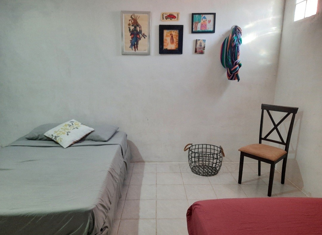 Esta casa te ofrece habitación doble amplia, y cómoda. Tv Smart, Wifi, Mini Split, 2 camas y 1 Hamaca, Área para trabajar desde casa. A demás la propiedad cuenta con una cocina equipada, comedor para 4 personas y baño completo solo para ustedes.