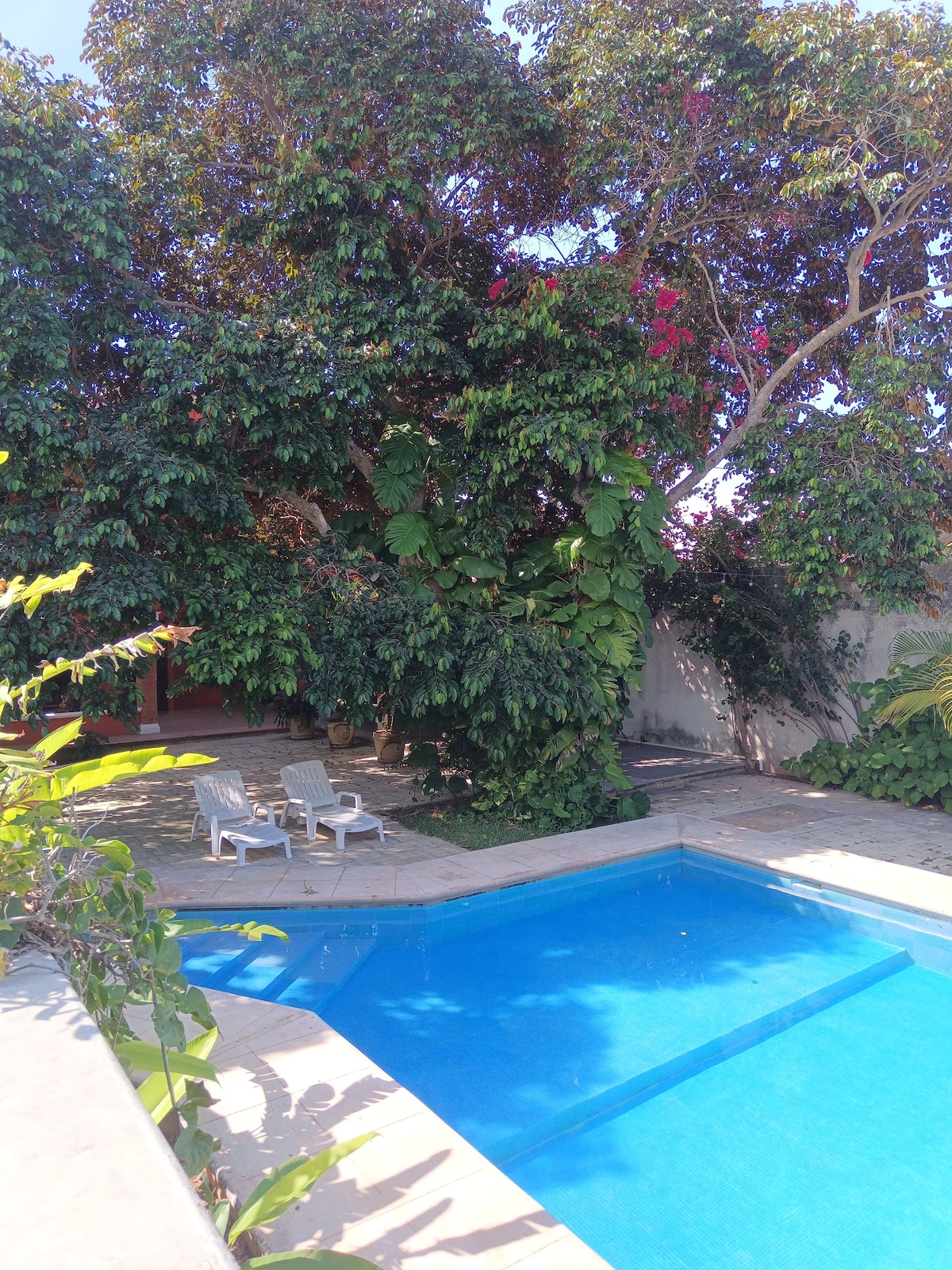 Déjate consentir en un espacio independiente, cómodo y seguro dentro del jardín de nuestra casa. Este es uno de dos departamentos privados que comparten la alberca. Disfruta el cantar de las aves, un buen libro o un chapuzón. A solo 900 metros del malecón y 1.3 km del centro histórico. Si vienes con intención de ahorrar $, encontrarás dos supermercados a unos pasos. Si traes auto, puede quedarse dentro de la propiedad. Estamos entre Colosio y López Mateos, ahí puedes tomar autobús.