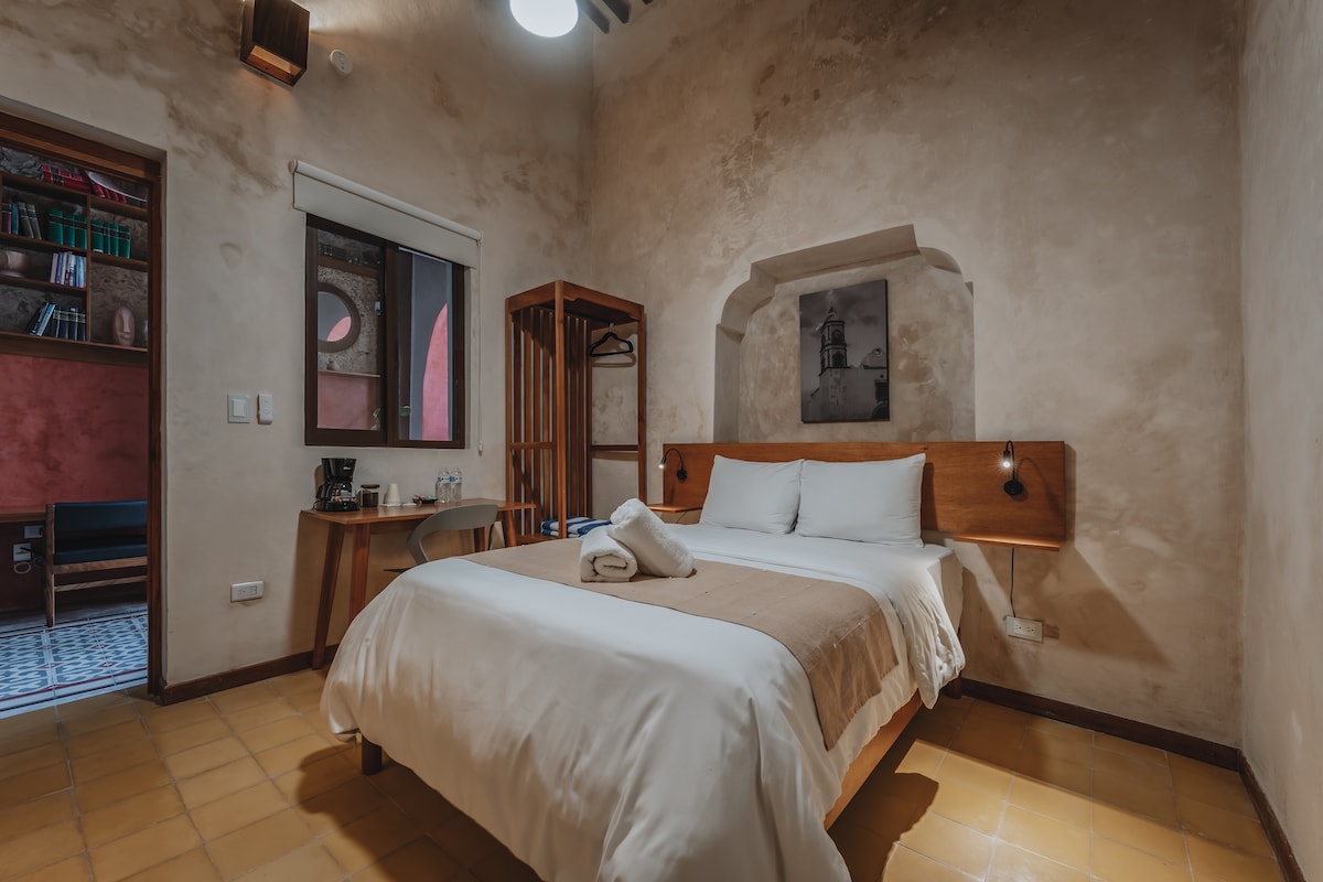 Su ubicación la convierte en el hospedaje ideal, ya que se encuentra en una zona lejos del corazón del Centro Histórico lo que la aísla del ruido de la noche. En este espacio encontrarás una habitación que data de la época colonial, restaurada y una muestra de los coloridos pisos de pasta que vestían las casas antiguas. La combinación entre ambos tiempos logran crear un ambiente armonioso y limpio, dando espacio al disfrute y sensación de calidez.