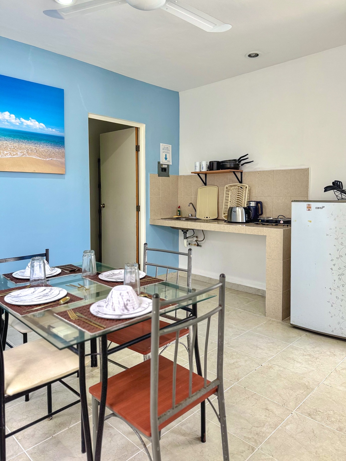 Bienvenido a Kai Blue 4, su refugio privado en el segundo piso, diseñado para ofrecerle comodidad y un toque de estilo costero. Este apartamento de un dormitorio es un espacio tranquilo y moderno, perfecto para su estancia en Campeche.