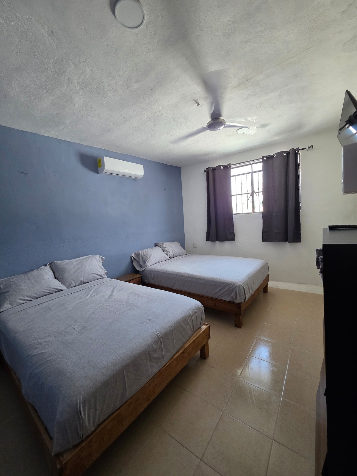 El alojamiento: El departamento esta completamente equipado, cuenta con Wif-fi, T.V por cable, 90 canales, aire acondicionado, baño independiente, entrada independiente, estufa, refirgerador, cama matrimonial refrigerador, sillón, meseta, sillas periqueras. Los acabados son completamente de primera calidad cuenta con un balcón, para poder salir a tomar aire. Actualmente estamos haciendo más departamentos al final del pasillo, pero nos adaptamos a los horarios de salida de las personas.