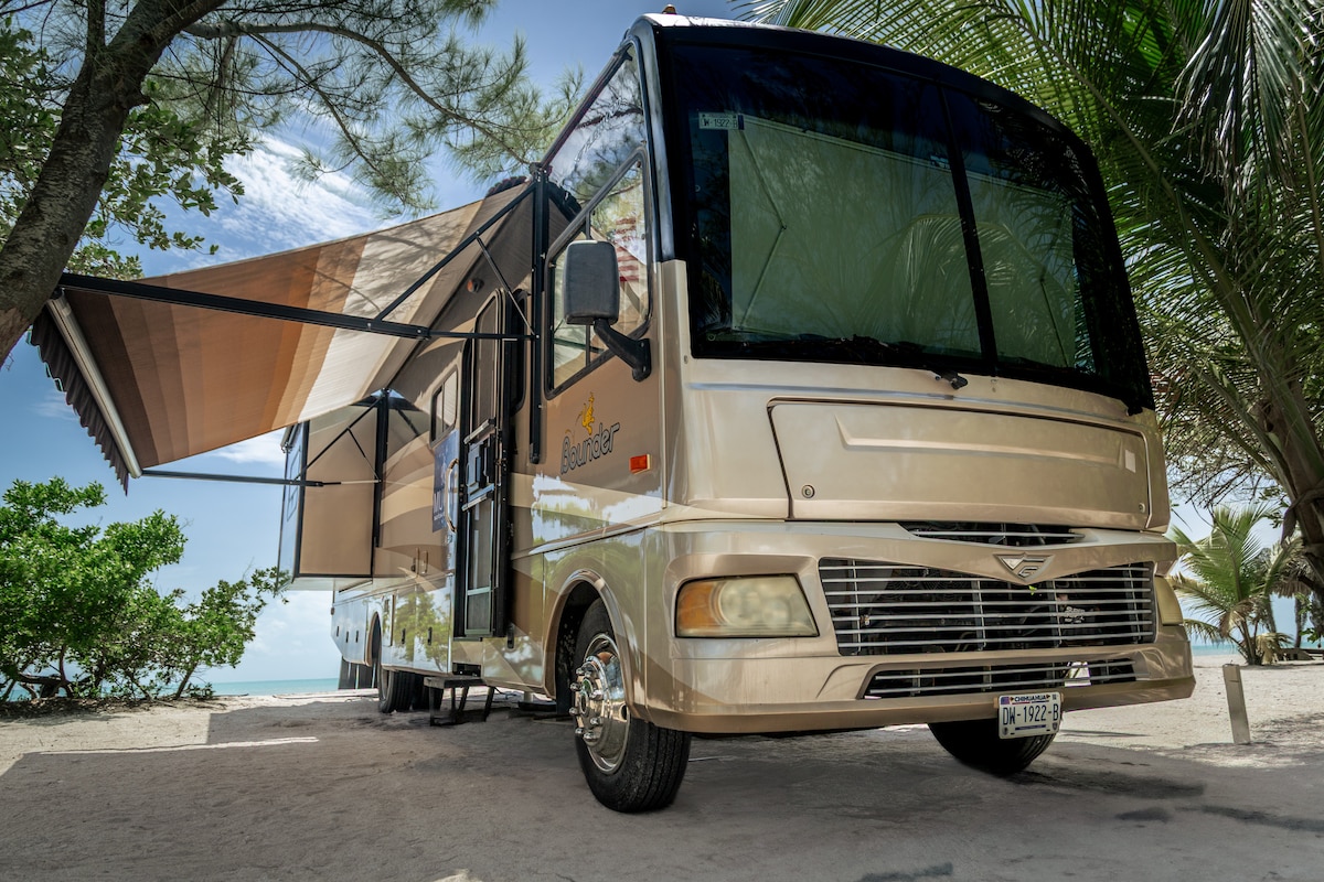 IMPORTANTE: Si deseas llegar después d las 6 pm consulta antes de reservar para que te enviemos las instrucciones de ingreso. Nuestro lujoso motorhome llegó desde el sur de Estados Unidos y desde entonces está instalado en una de las playas mas tranquilas y hermosas. Completamente equipado, diseñados para la desconexión total: aquí el tiempo fluye sin wifi, trasladándote al disfrute de la calma y el entorno.