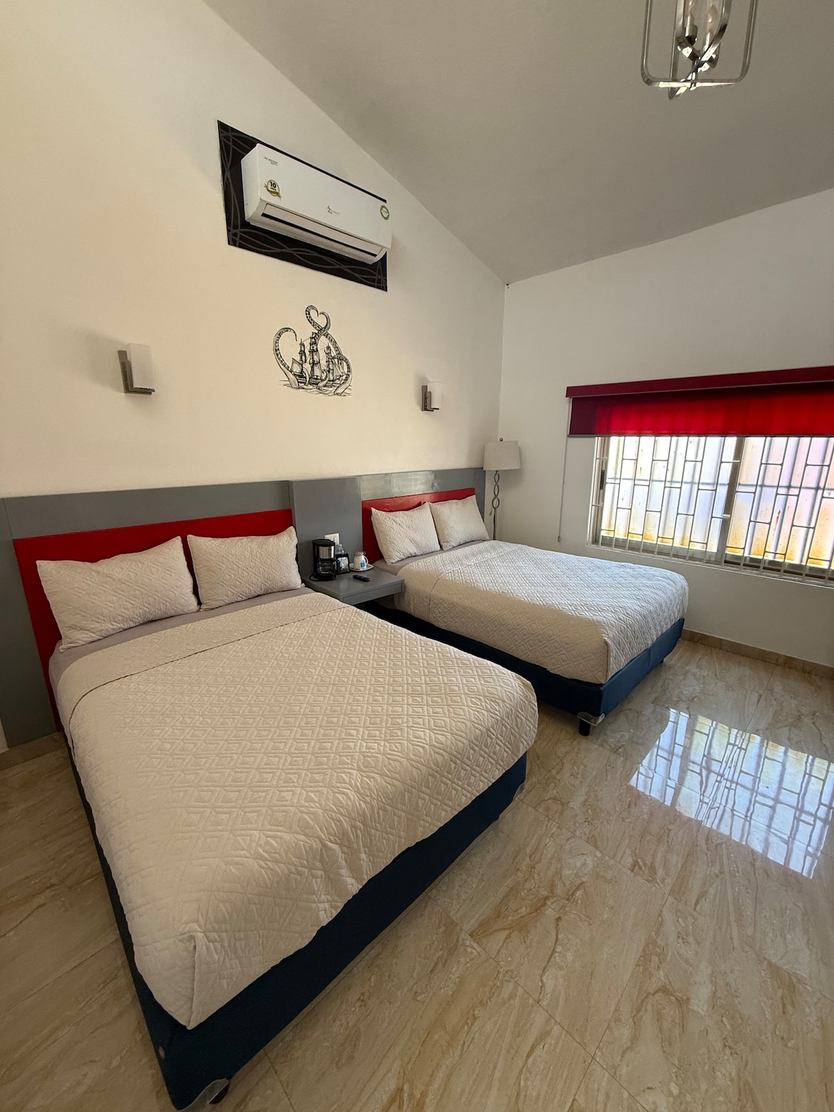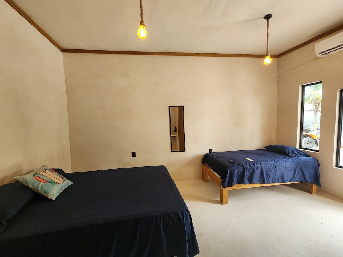 Nuestra habitación con dos camas matrimoniales es ideal para compartir, ofreciendo un espacio cómodo y funcional. Equipada con aire acondicionado, WiFi, televisión y baño privado, brinda el ambiente perfecto para descansar después de un día de trabajo o exploración en Ciudad del Carmen