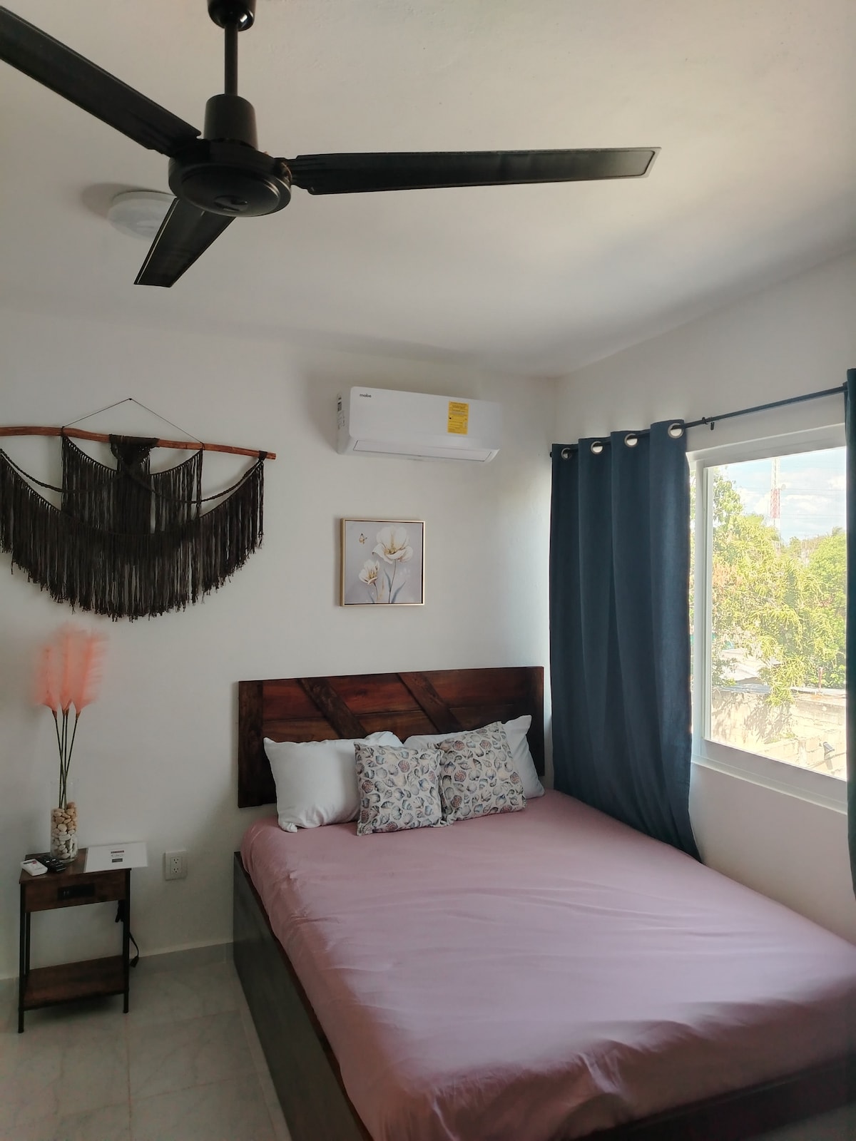 Departamento amplio cómodo con 1 habitación y 2 camas matrimoniales. En la cocina encontraras : parrilla de inducción, freidora, licuadoras, comedor para 4 personas, y una pequeña estancia trasera ideal para relajarse al atardecer o tomar un café por la mañana. La ubicación es excelente, ya que está cerca de supermercados, restaurantes, y transporte público. Sin duda, este departamento es una opción perfecta para quienes buscan un lugar acogedor y bien equipado para su estancia.
