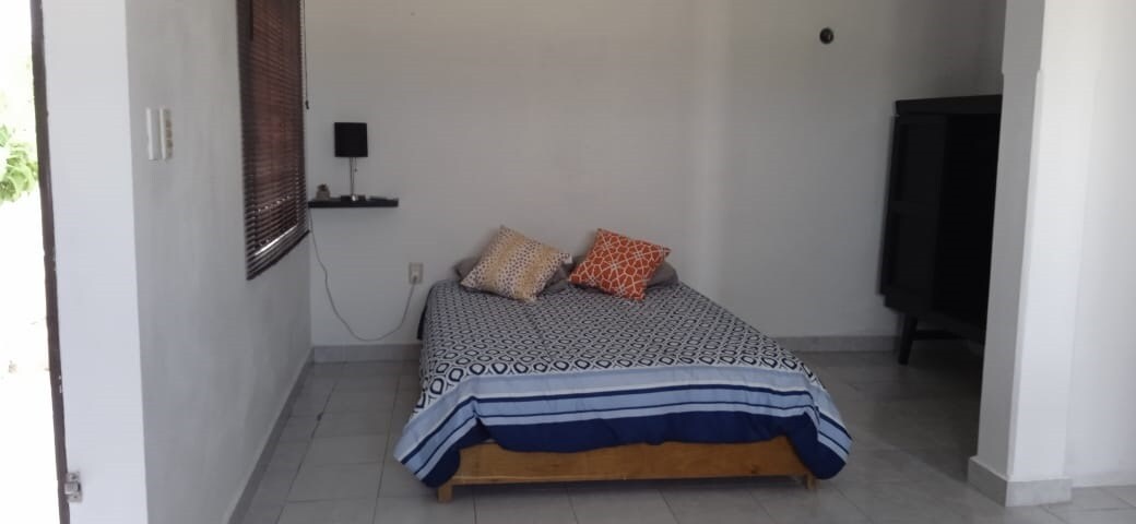 Disfruta de un departamento centrico en planta alta, con colchones cómodos, con baño, un clima, abanicos , iluminado, con techos altos de vigas de madera, candiles, amueblado con armonía, con vista a la muralla y todo lo indispensable para hacerte sentir como en casa, con televisión Smart tv, WiFi, internet, sala, desayunador-cocineta con vasos y platos, microondas, y refrigerador, agua fría y caliente, baño grande con toallas, shampo, jabón.