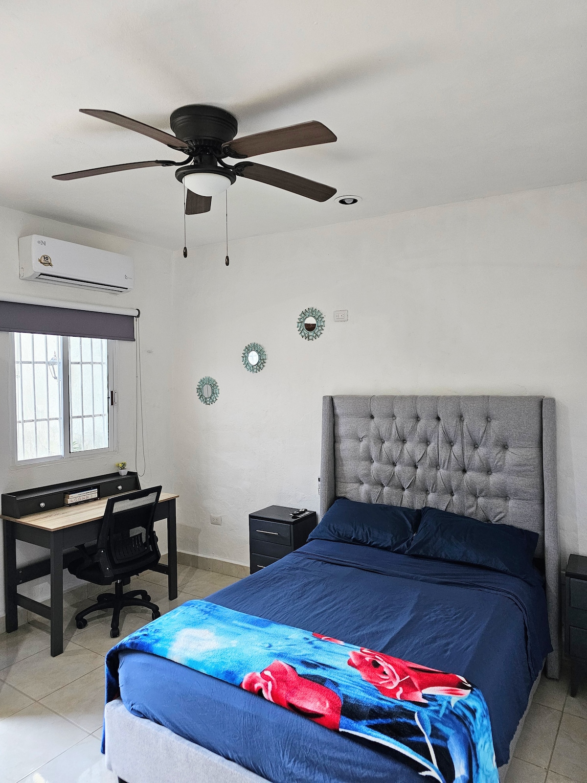 Acogedor departamento monoambiente en planta alta con todo los servicios básicos incluidos como: shampoo, jabón de baño,jabón de manos,clima, ventilador, microondas, refrigerador, Smart TV con cable, Roku WiFi, agua fría, agua caliente, utensilios de cocina, platos, vasos,cubiertos, estufa eléctrica,cafetera con sus filtros de café, café, azúcar, jabón para lavar trastes, esponja para lavar trastes, kit primeros auxilios, extintor, detector de humo y cámaras de vigilancia las 24 horas del día.