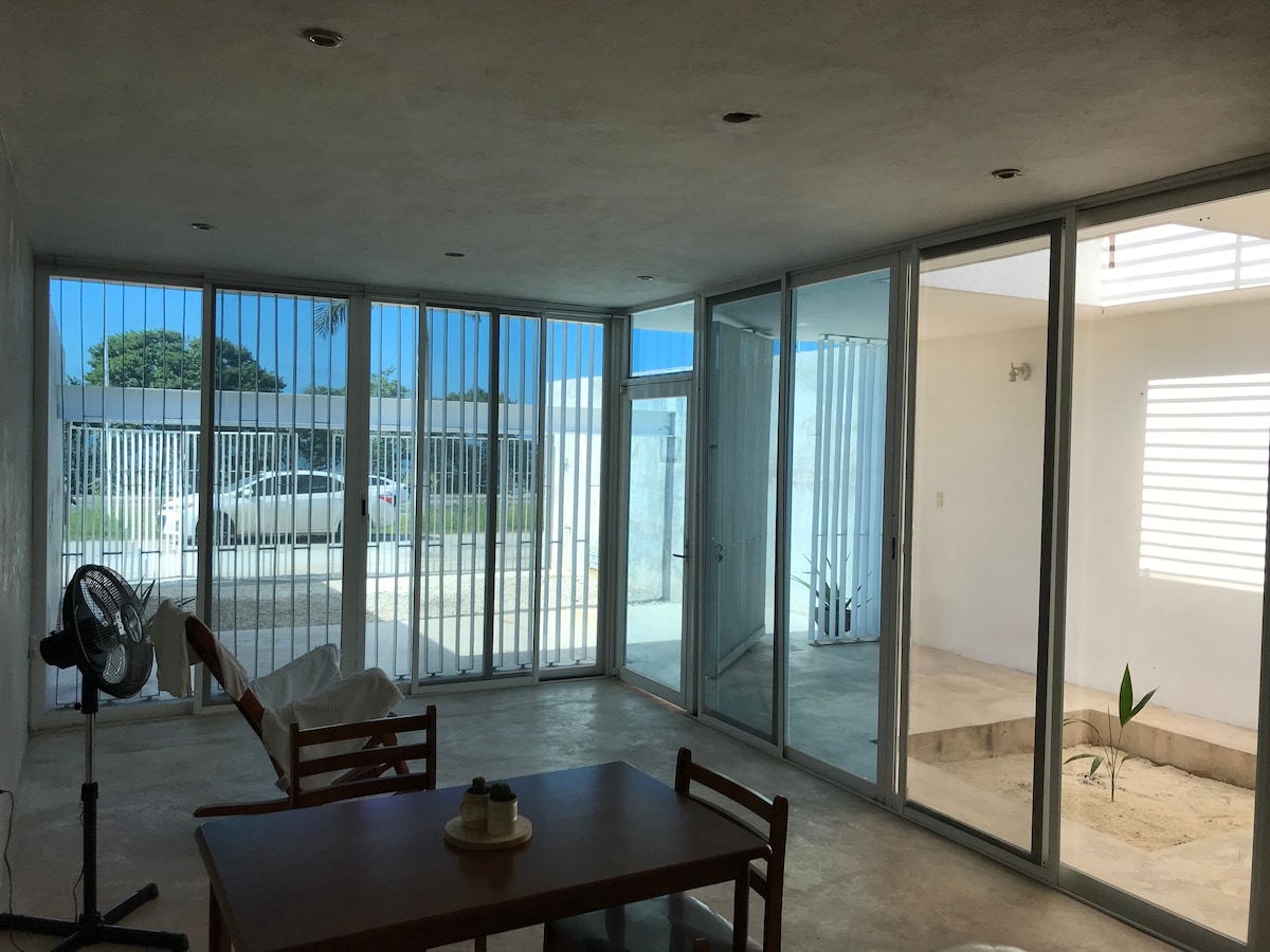 Bienvenido a tu hogar en Campeche, ubicado en el recién nombrado "Barrio Mágico de San Roman" barrio antiguo lleno de historias gastronomía y tradicion. Tu hogar se encuentra a unos metros del malecón en el area de restaurantes donde podrás disfrutar también de los hermosos atardeceres y 15 min a pie de nuestro centro histórico. Cuenta con: 1 habitación A/A,Smart Tv, WiFi, 2 camas (Queen, Matr) 1 Sala 1 Comedor 1 Cocineta 1 Baño completo Cualquier duda favor de contactarnos.