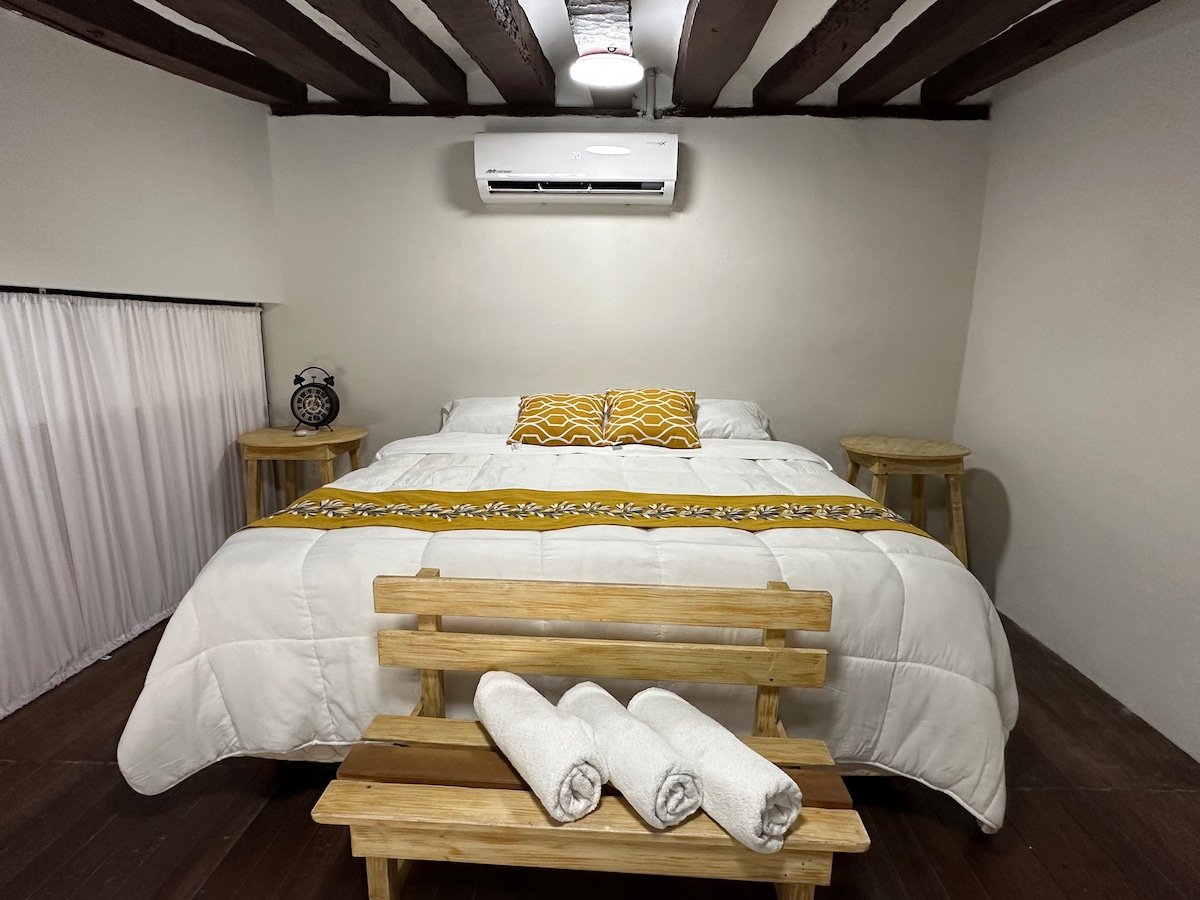 Amplia casa estilo colonial en una zona tranquila del centro. Cuenta con cocina, lavadero, un patio interior y un amplio patio trasero con jardín. Ambas habitaciones tienen aire acondicionado y baño completo. Se permiten mascotas en las zonas exteriores de la casa y en la sala, cocina y comedor, siempre y cuando se preserve el mobiliario. Se pide mantener a las mascotas fuera de los dormitorios. Los huéspedes serán responsables por la limpieza de los desechos de sus mascotas.