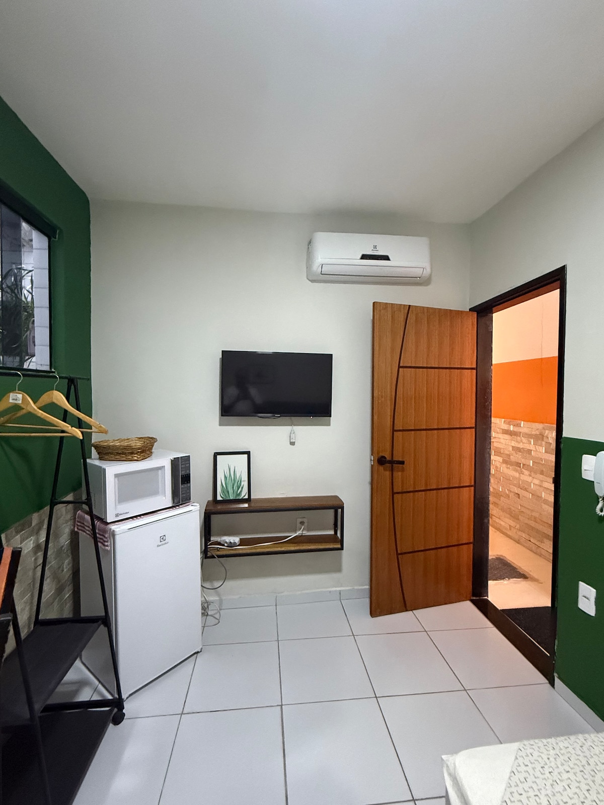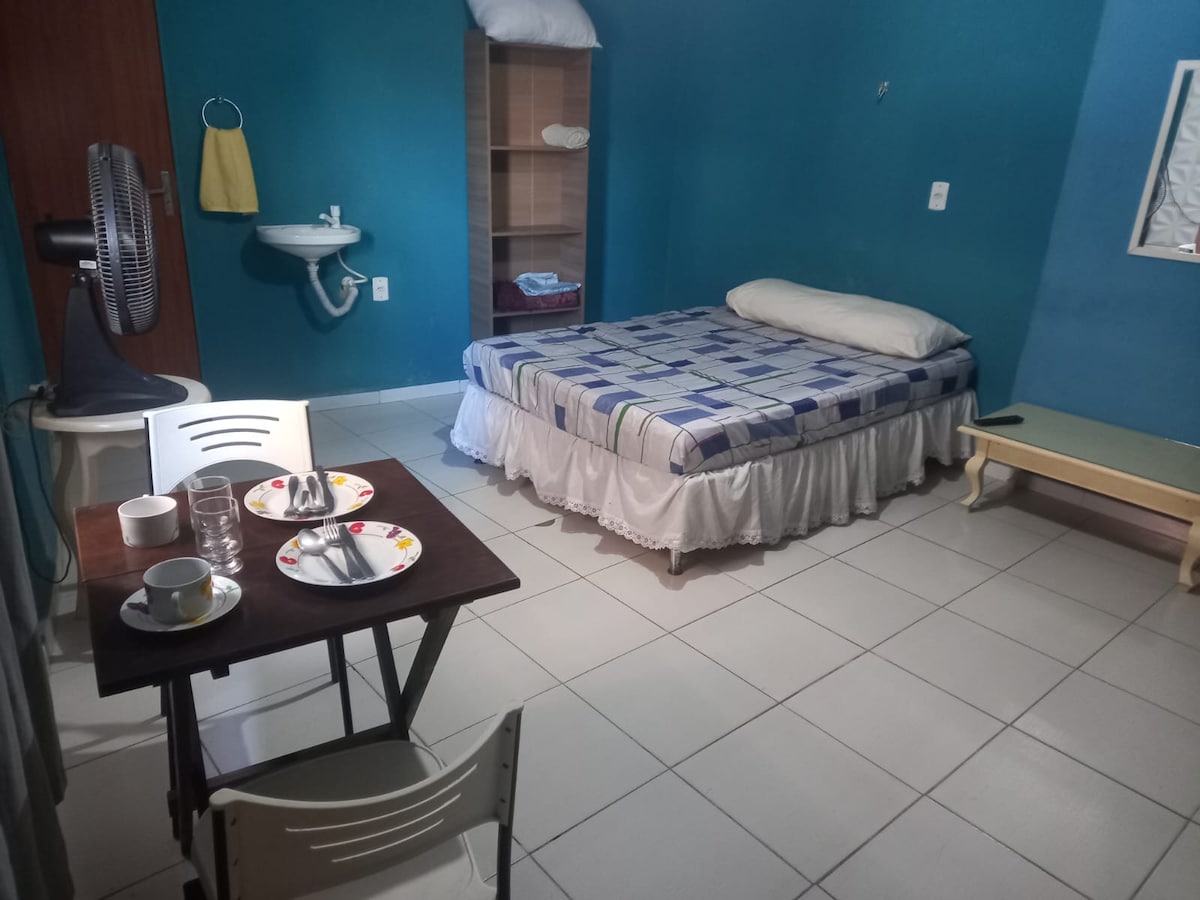Espaço confortável para temporada ou descanso longe da sua rotina. Ideias para qualquer programação. Ao lado tem uma Conveniência 24h, lanchonete, tapiocaria e loja de açaí que tem uma qualidade de lanche muito bom e o preço bem acessível. Padarias, mercado, a menos de 1km, assim como também tem uma moça que entrega almoço na porta do apartamento. *Temos ar condicionado e chuveiro quente*