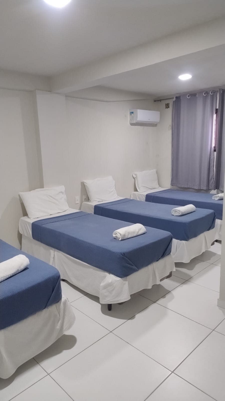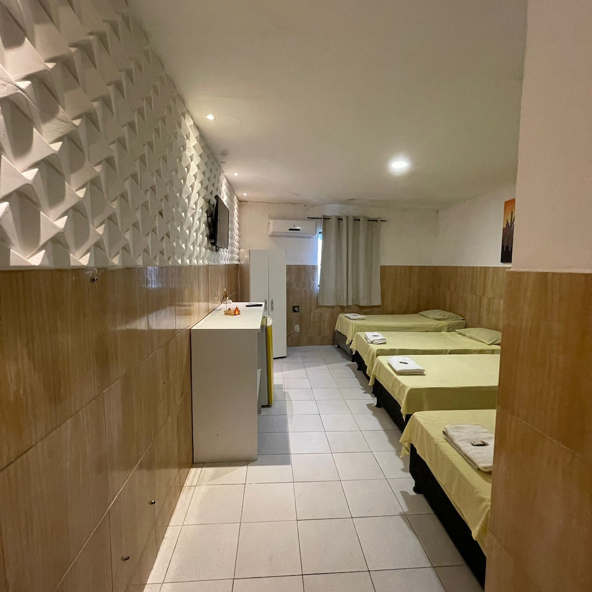 Todos os quartos possuem banheiro privativo, Smart TV, ar condicionado, Wi-Fi, ducha blindada, camas box e frigobar.