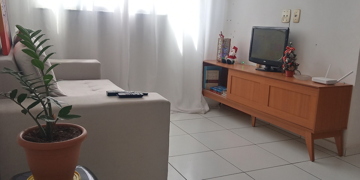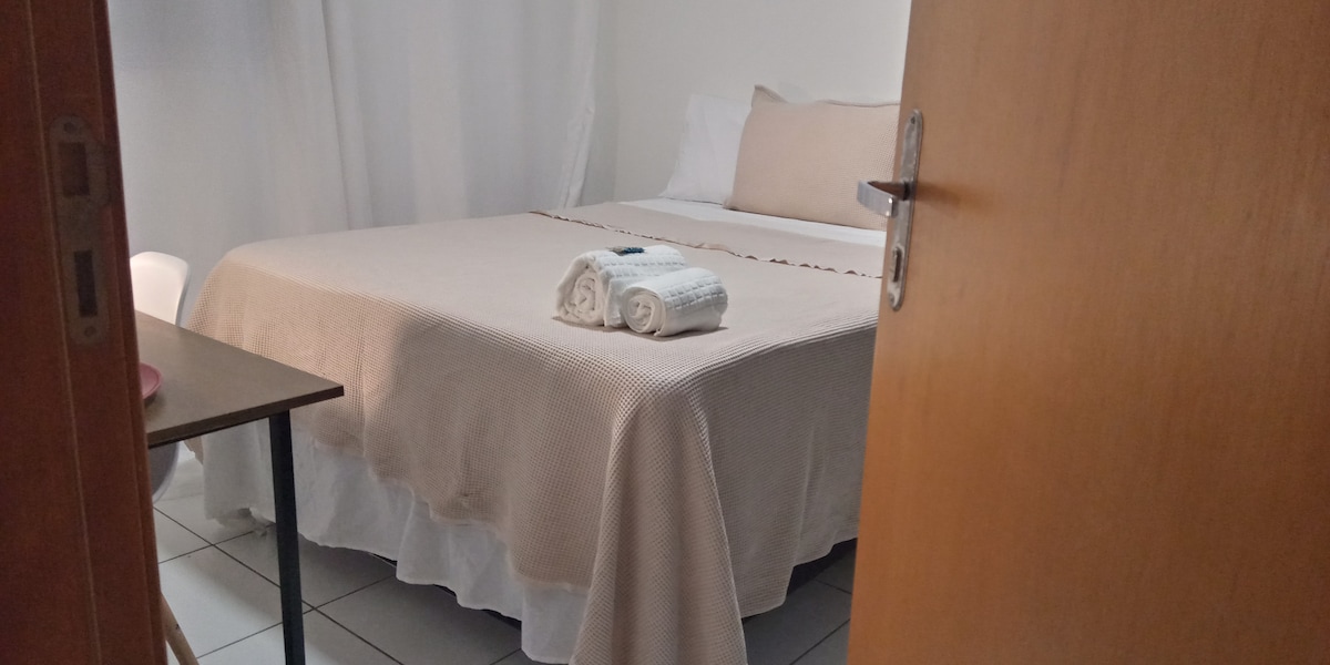 O Apartamento é simples ,porém pensado em acomodar bem nossos visitantes.Situado num bairro tranquilo da nossa cidade e localizado a 5 km do centro da cidade.Estamos no Aplicativo faz pouco tempo e nosso intuito é receber críticas construtivas para que possamos melhorar!!