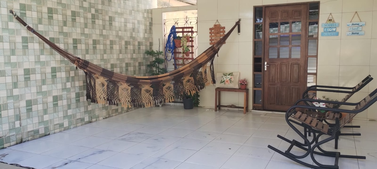Casa muito aconchegante e familiar, ideal para grupo de até 14 pessoas. - Garagem para 2 carros. - 1 quarto com 1 cama queen e 1 cama de solteiro com ar, 1 rede, mesa e computador (suíte); - 1 quarto com 1 cama de casal com ar e 1 cama de solteiro; - 1 quarto com 1 cama queen e 1 cama de solteiro com ventilador (suíte); - 1 quarto com 1 cama de casal, ventilador; - 1 quarto com 1 cama de casal e 1 cama de solteiro e ventilador; - Cozinha completa; - 3 banheiros completos;