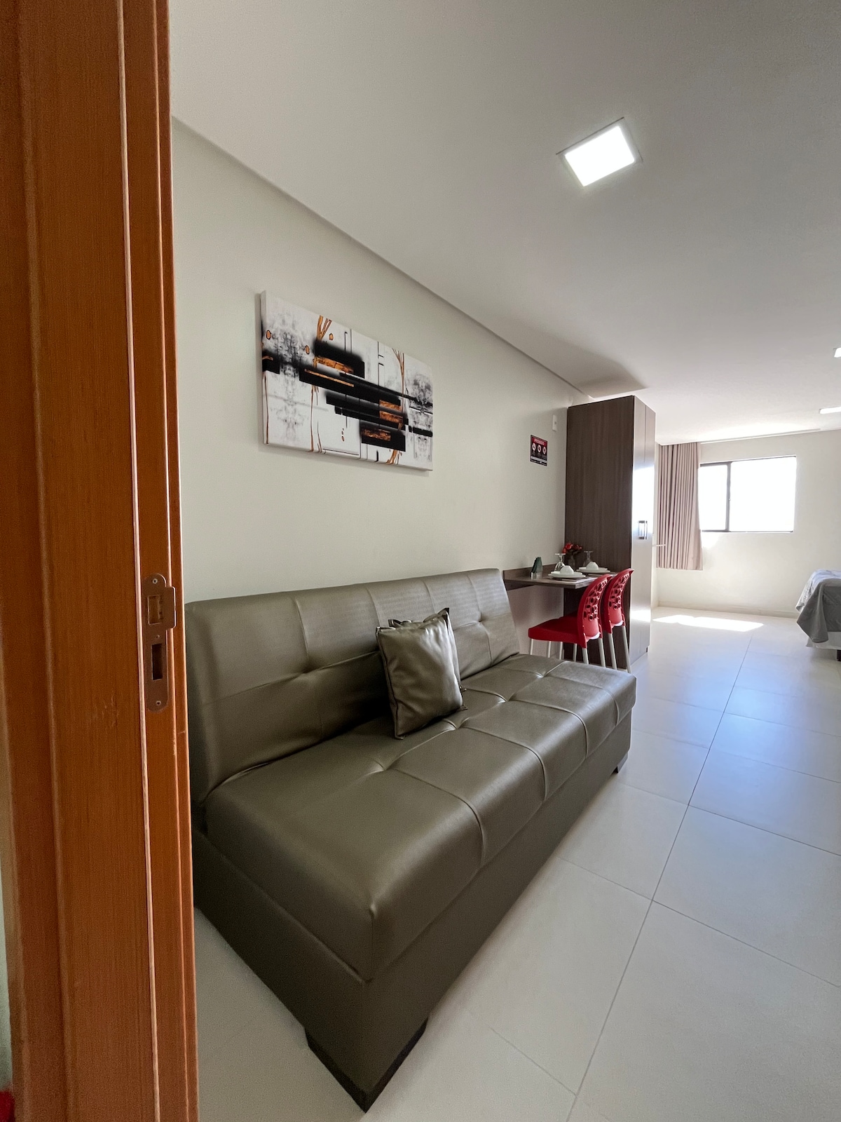 Espaço confortável para temporada ou descanso longe da sua rotina. Ideias para qualquer programação. Ao lado tem uma Conveniência 24h, lanchonete, tapiocaria e loja de açaí que tem uma qualidade de lanche muito bom e o preço bem acessível. Padarias, mercado, a menos de 1km, assim como também tem uma moça que entrega almoço na porta do apartamento. *Temos ar condicionado e chuveiro quente*