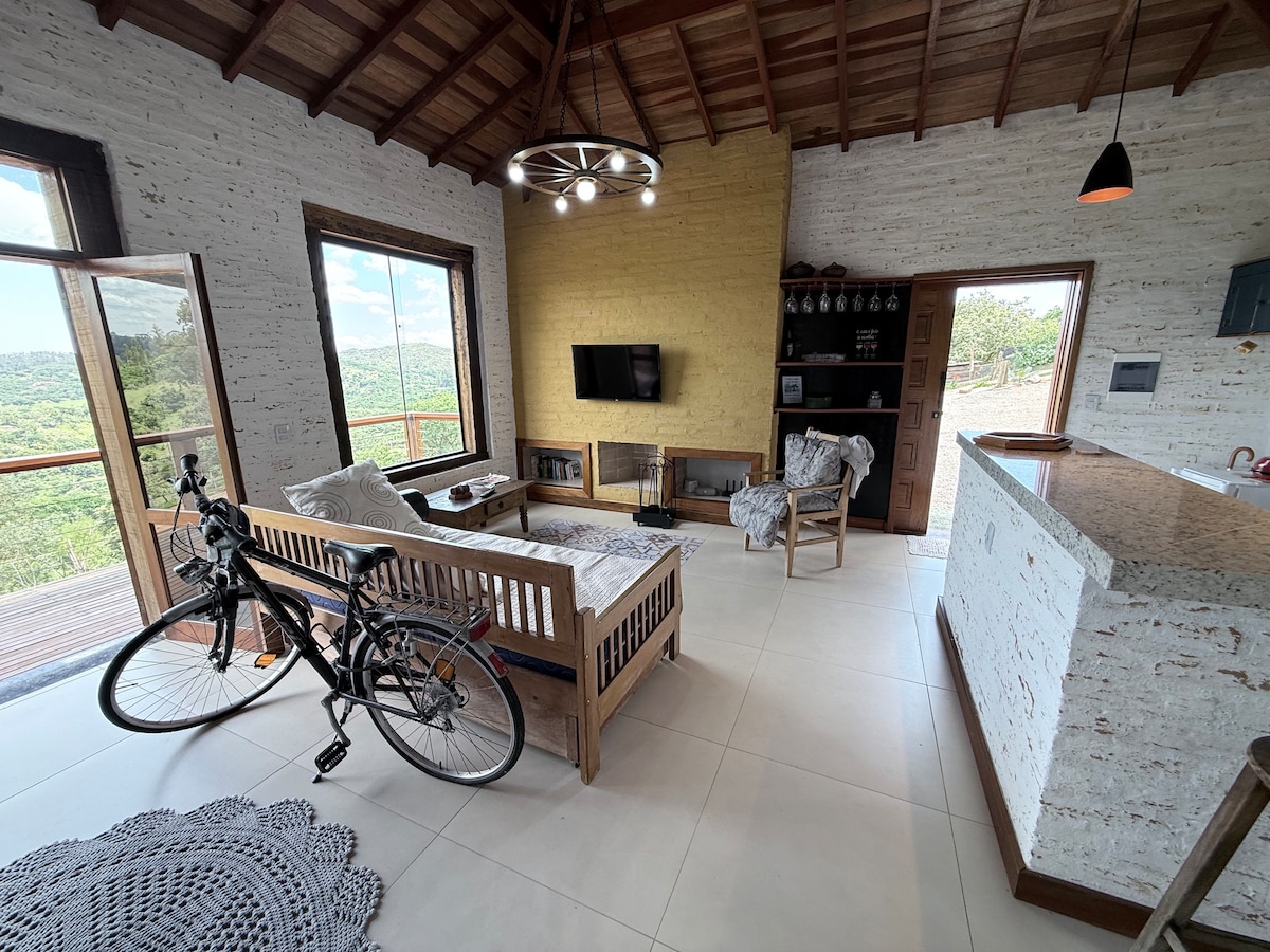 “Recarregue as baterias” nesta acomodação tranquila e confortável. Chalé ideal para casal com 1, 2 filhos ou nenhum para curtir e relaxar. Bela vista e trilhas para caminhadas ou bicicleta (terreno montanhoso). Oferecemos o Café da Manhã