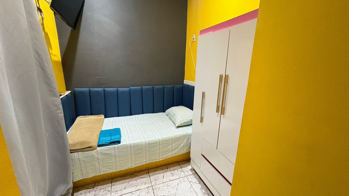 Local INDIVIDUAL.Simples,limpo e fresco,(EcoBrisa) Noites silenciosas Acesso por escadas, entrada independente, auto check in eletrônico após 13h,Check-out 9h A 2 quadras da AVFrancisco Glicério Cama de solteiro,Colchão novo,lençóis de algodão, cortinas blackout,cobertores Lavanderia,cozinha c/ café/temperos e toalhas. NÃO HOSPEDO FUMANTE,PESSOAS NÃO CADASTRADAS NO APP SEM PETS,SEM VISITAS(NEM P IR AO BANHEIRO) SEM GARAGEM OU ESTACIONAMENTO (É PERMITIDO ESTACIONAR NA RUA)