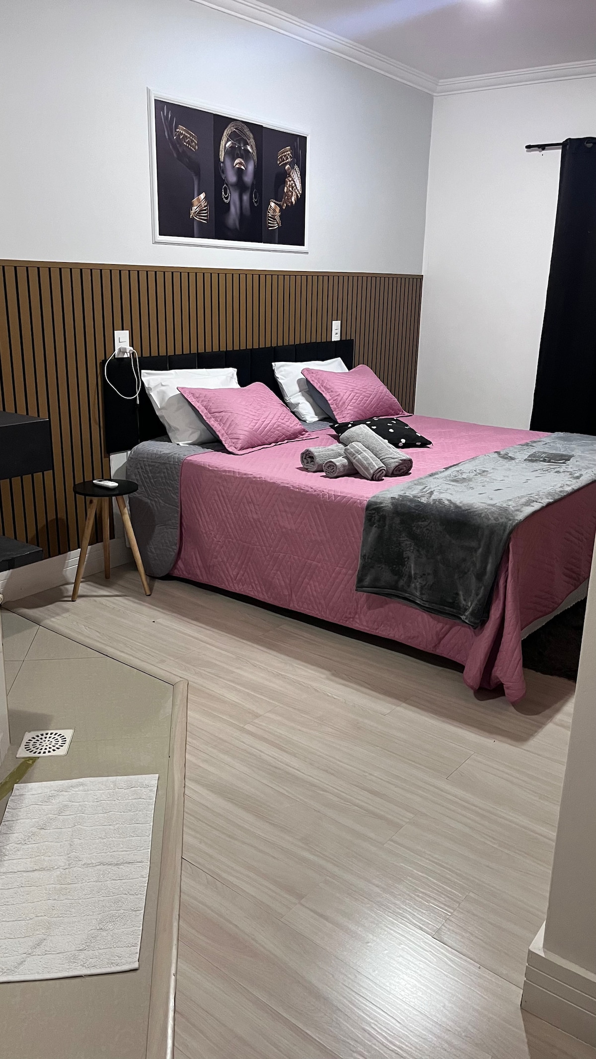 Aproveite o charme moderno e vintage dessa acomodação . Com toque minimalista moderno equipada com tv 50 polegadas ,ar condicionado e led que deixam o quarto um lugar muito aconchegante .