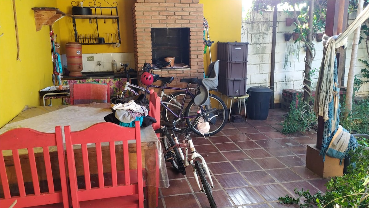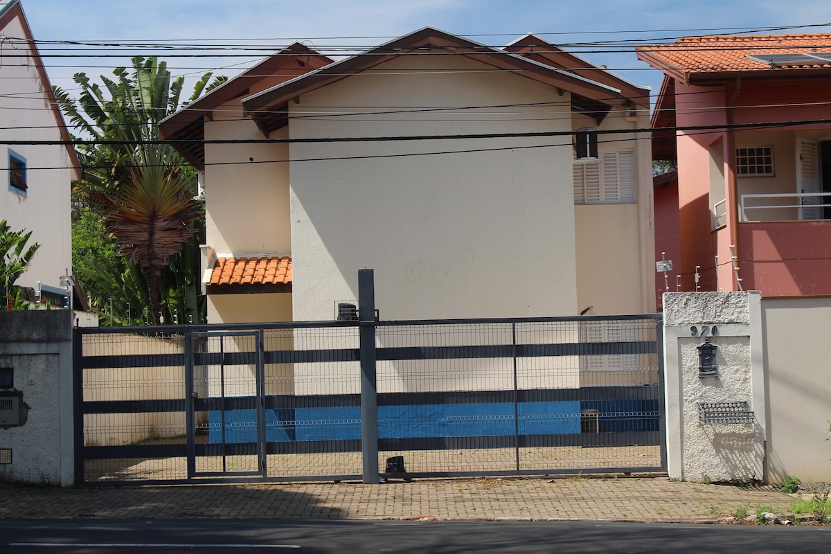 Suíte arejada com cama de casal e ar condicionado Cozinha, sala e quintal compartilhados com a anfitriã e outros hóspedes. Não tem garagem fechada, a casa não tem muro, mas o bairro é seguro Roupas de cama e banho fornecidas Em frente ao Lume e centro Suzuki 2,3 km da Unicamp 400 m do ônibus (gratuito) para a Unicamp 700 m do supermercado e farmácia 200 m da academia Smart Fit 6 km do shopping D. Pedro Bares, restaurantes, feira de artesanato e todo tipo de comércio acessíveis a pé.
