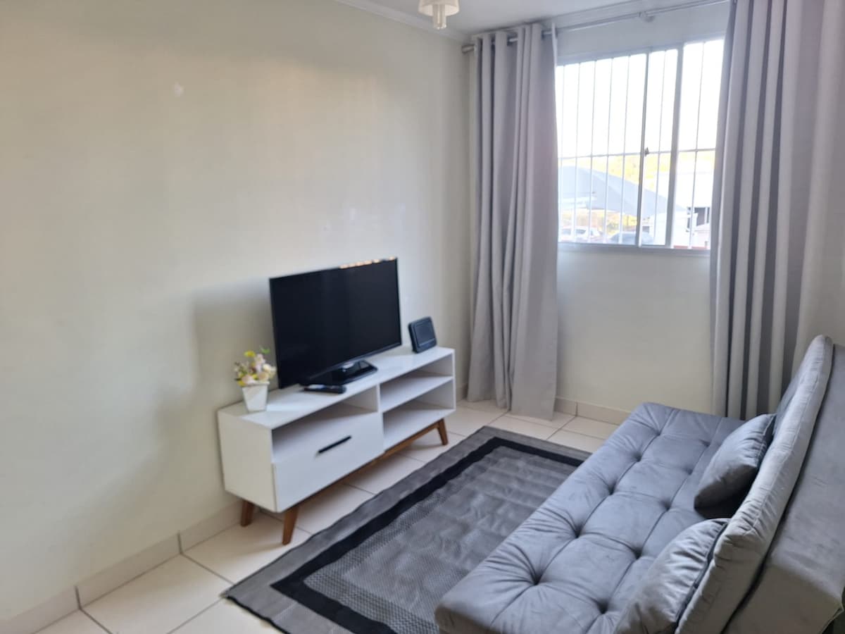 Apê novo de 35m2, completo e aconchegante, prontinho para te receber. Localizado no Parque Industrial, um dos bairros mais tradicionais e tranquilos de Campinas, a cerca de 1,3 km da Rodoviária de Campinas. Possui 1 quarto (com ar condicionado), tem design clean e funcional para até 3 pessoas, com 1 cama queen e 1 sofá cama. O condomínio possui áreas comuns como: piscina e academia. Possui 1 (uma) vaga de garagem coberta e demarcada dentro do condomínio.