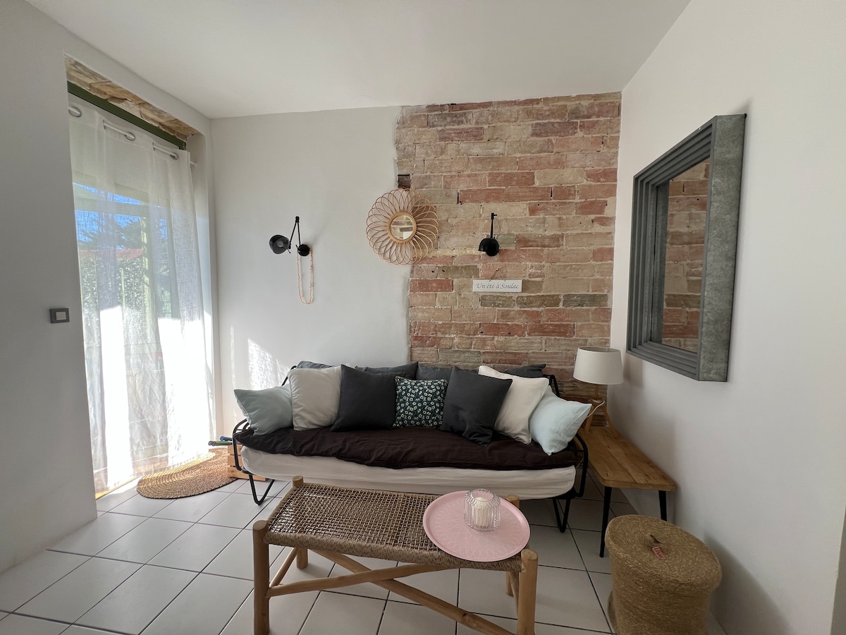 Logement avec jardin clos paysagé, terrasse ombragée avec salon de jardin, barbecue et parking privé. Pièce à vivre climatisée. Simplifiez-vous la vie dans ce logement paisible et central.Maison située à 5 mn du centre ville et du port de plaisance, on peut également accéder aux plages en vélo et en voiture très rapidement car piste cyclable.Venez profiter de ce lieu idéal en famille.