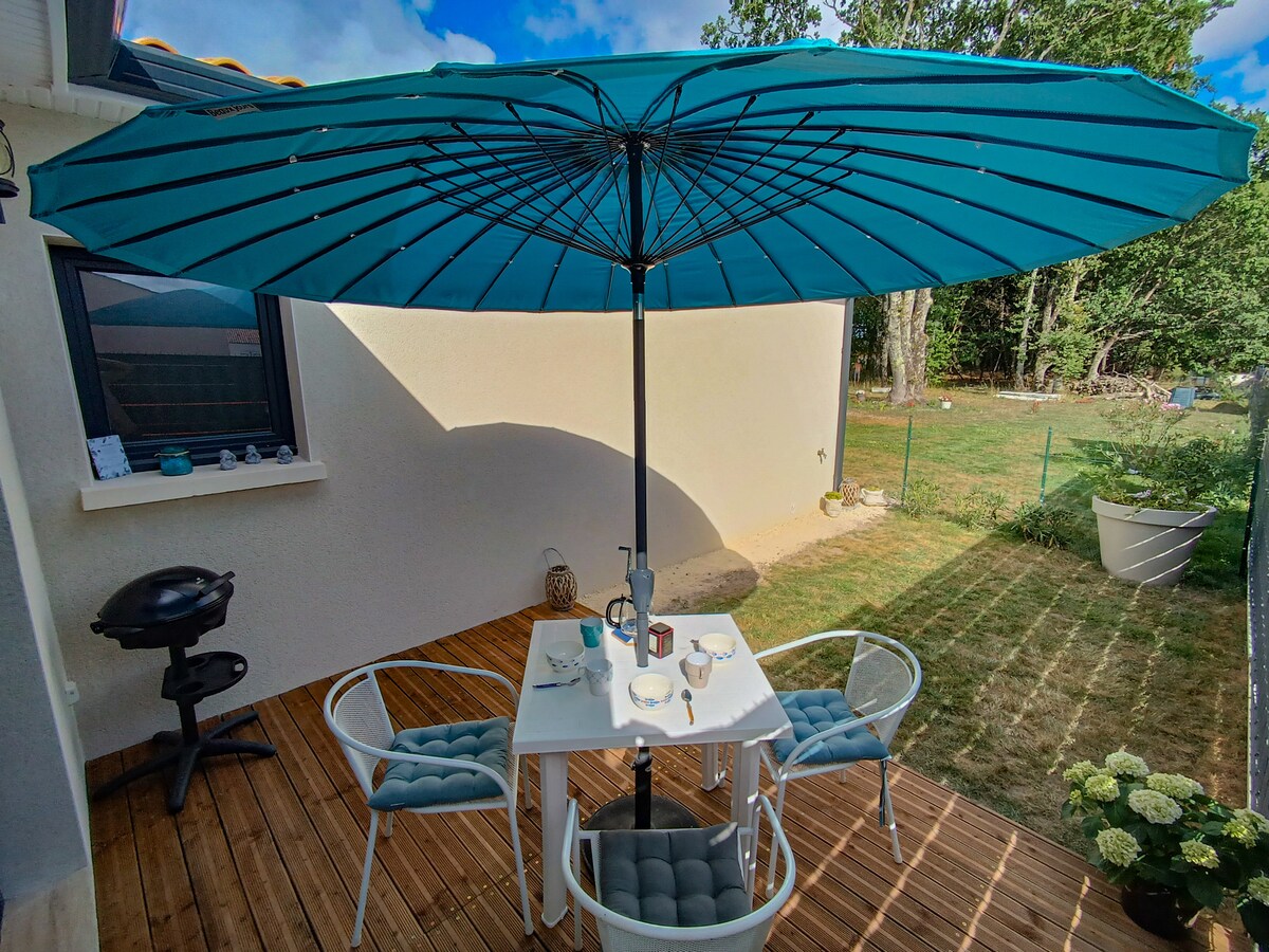 Bonjour Je loue cette petite maison pour 4 personnes Elle dispose d’une terrasse plein pied de 9m2 donnant sur la piscine de la résidence La maison dispose de tout le confort pour profiter de vacances à l’océan (four,micro onde, machine à café senseo, lave linge,lave vaisselle...) Nous avons rentabilisé l’espace au maximum mais ce logement cocooning demande de bien connaître ses co vacanciers notamment parce qu’il y a une seule grande chambre à l’étage avec 2 lits