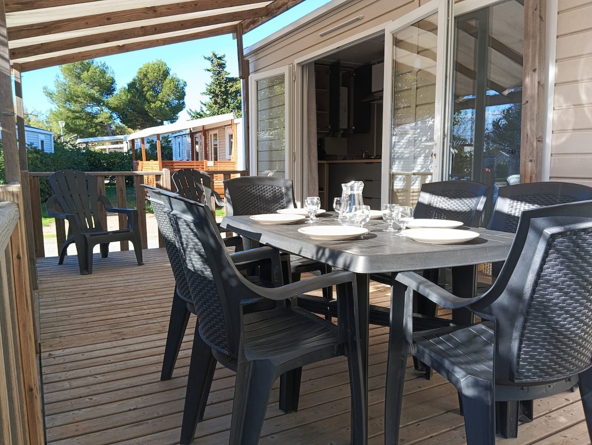 6-8 人移动房屋,环境宁静,靠近瓦尔拉斯海滩,塞里尼昂 4 星级