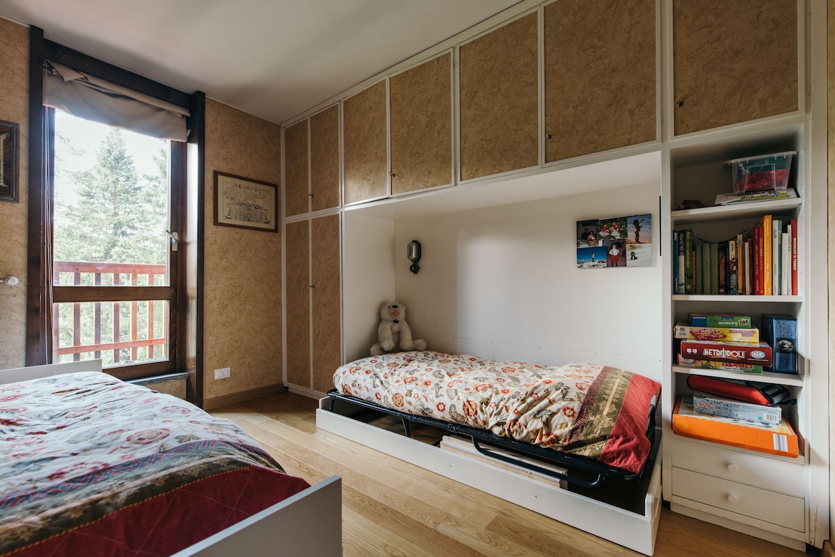 Tuckett Lodge is located in the residential part of Madonna di Campiglio, a few steps away from the cross-country skiing and downhill skiing (in winter) and the edges of the golf course (in summer). Spread over two floors offers four bedrooms (two double and two with bunk beds), two bathrooms (with shower), dining room with kitchen and a cozy living room. The slopes are a 10 minutes walk or by ski bus departing 50 meters from home. - Entirely renovated en summer 2022