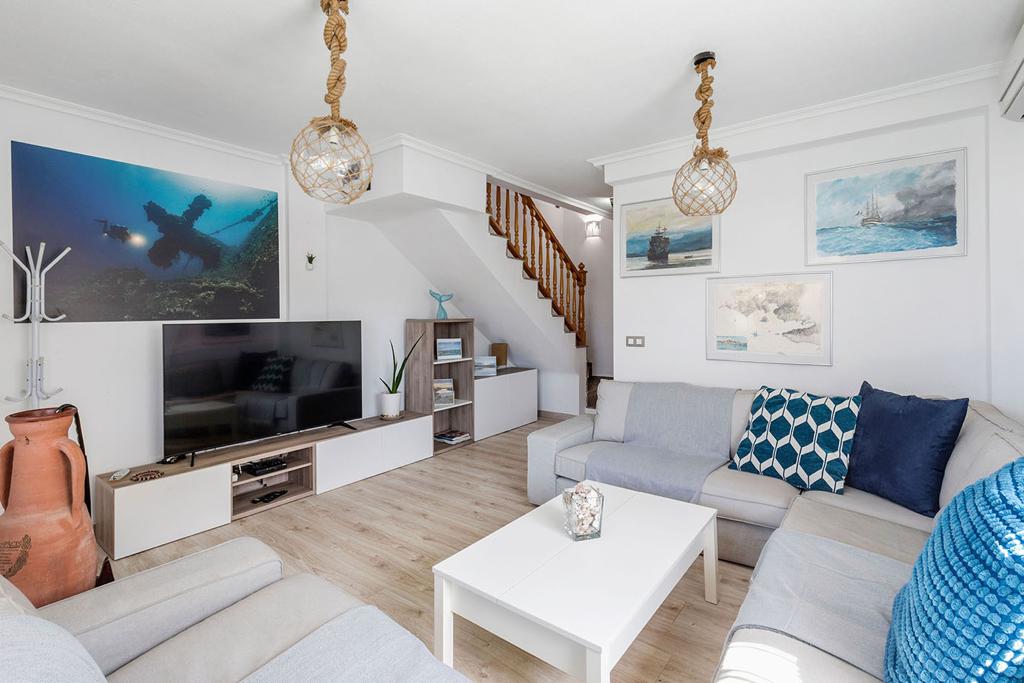 This beautiful and spacious south-facing duplex is located in the heart of Orihuela Costa in a calm residence with a private olive tree patio, a back yard and solarium, with an access to the communal swimming pool, within a walking distance to La Zenia Boulevard, variety of restaurants and bars! This house is the ideal place for a relaxing time out by the sea with the whole family!