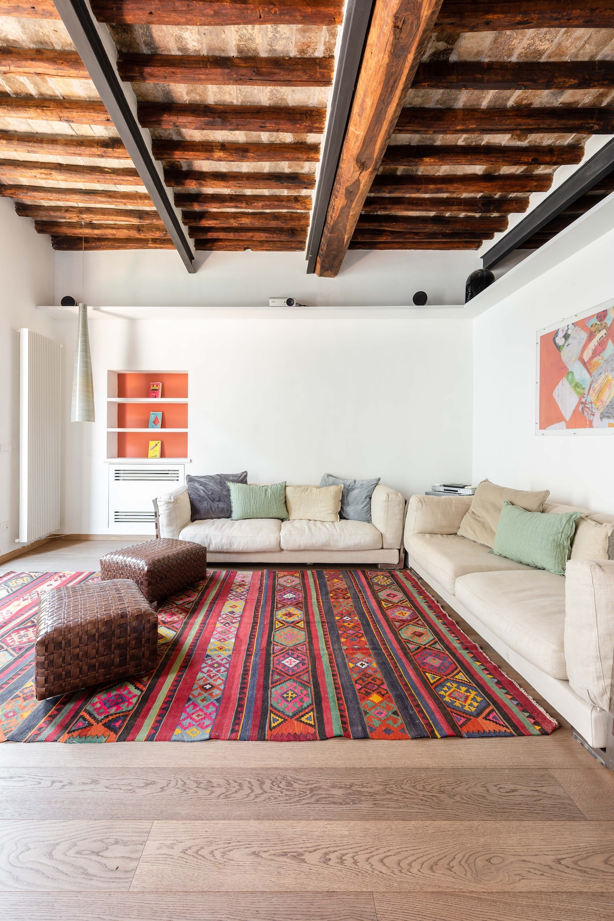 Bright and quiet penthouse apartment in the heart of Trastevere, with a wonderful terrace and an unparalleled view of charming roman roofs and the Gianicolo hill. The flat is meticulously refurbished and set in a picturesque cobblestoned street, just around the corner from the lively restaurants and cafes. La Casetta al Mattonato is located on the 3rd floor (41 steps, no elevator) of a 1600s typical roman building, within walking distance of all major attractions.