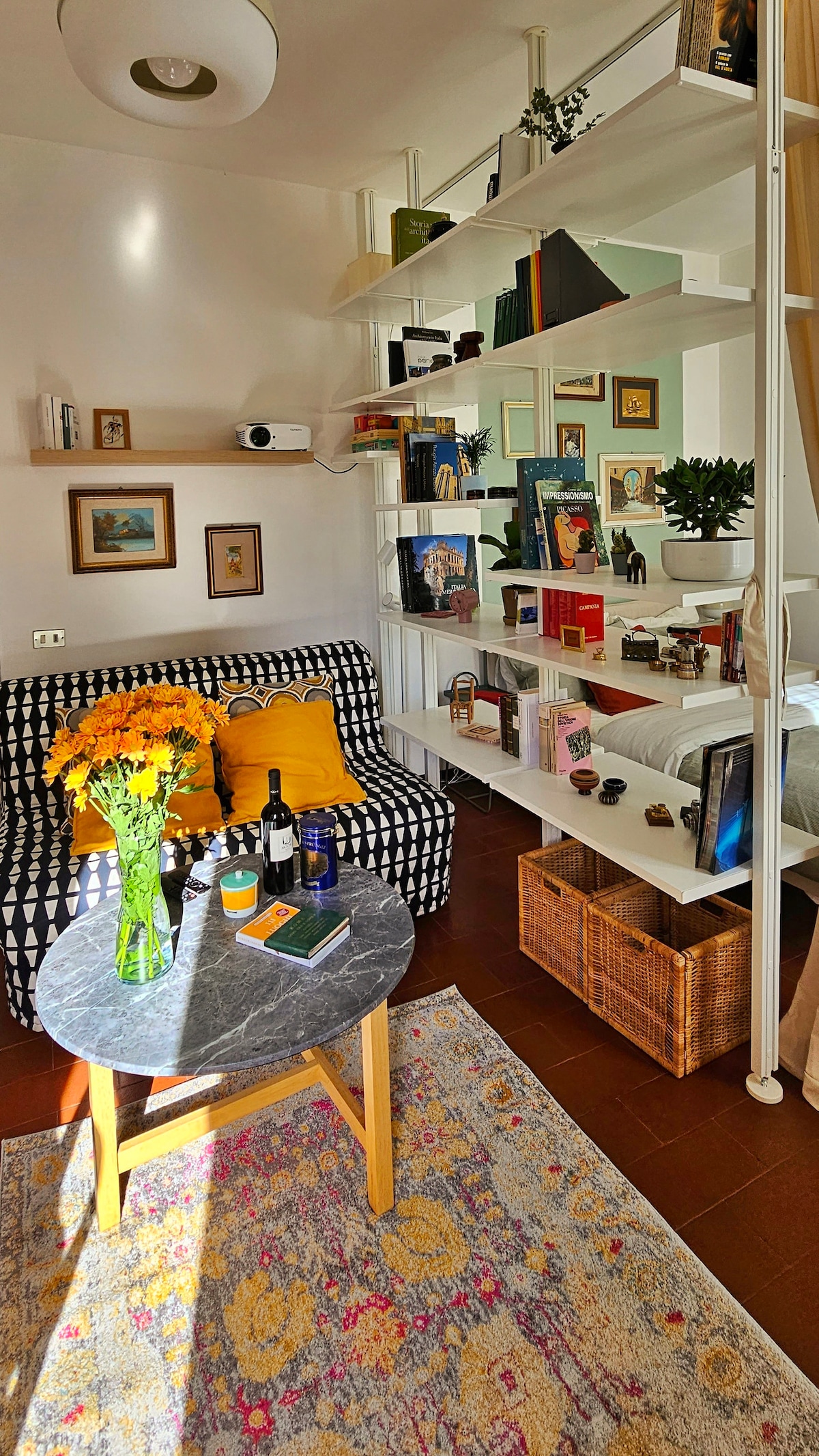 Scegli questo ambiente raccolto e arredato con fantasia per far base a Roma. Qui troverai un'atmosfera intima, dove l'essere comodi dappertutto a piedi scalzi diventa una sensazione che coinvolge anche il resto del corpo – sensi ed emozioni comprese.