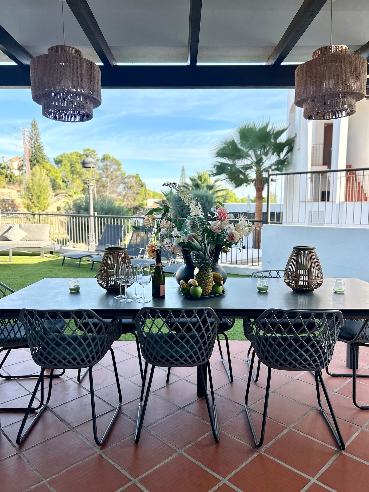 Moderno apartamento de diseño completamente nuevo, situado en una urbanización llamada Jardín Botánico, en plena naturaleza y a tan sólo 15 minutos en coche de Puerto Banús. La urbanización se encuentra rodeada de naturaleza y un rio cerca, pero con todas las comodidades de de la ciudad y la playa a sólo 10 minutos en coche. También disponemos de 3 piscinas exteriores y 1 piscina interior climatizada (abiertas según temporada) jacuzzi, sauna, pista squash, tenis, padel, gimnasio. Ideal para 4.