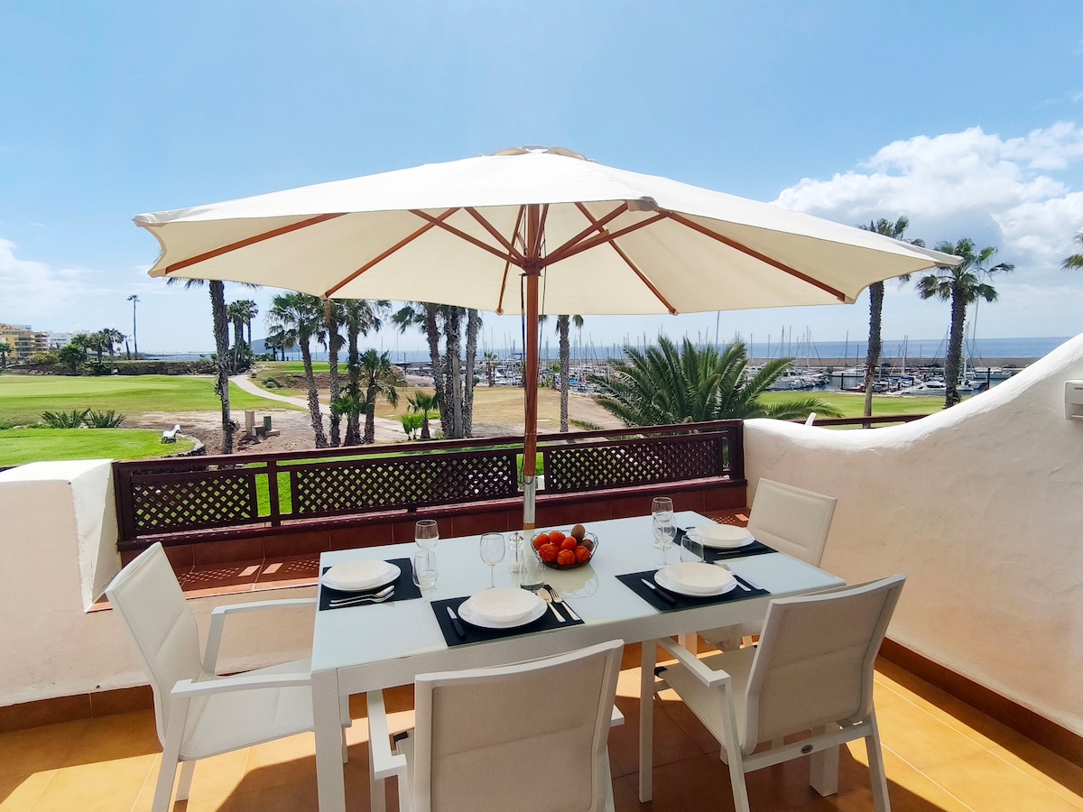 Vieni a rilassarti in questo angolo di paradiso, immerso nel verde dei campi da golf, con una vista meravigliosa al porto turistico di Amarilla Golf e al mare. Troverai tutto quello di cui hai bisogno per passare le tue vacanze. Il residence dispone di 3 piscine con accesso gratuito a pochi metri a piedi dal mare. La casa dispone di cucina semi indipendente, un soggiorno spazioso e luminoso con accesso all´ampia terrazza, 2 camere doppie e un bagno con vasca. Supermercato raggiungibile a piedi.
