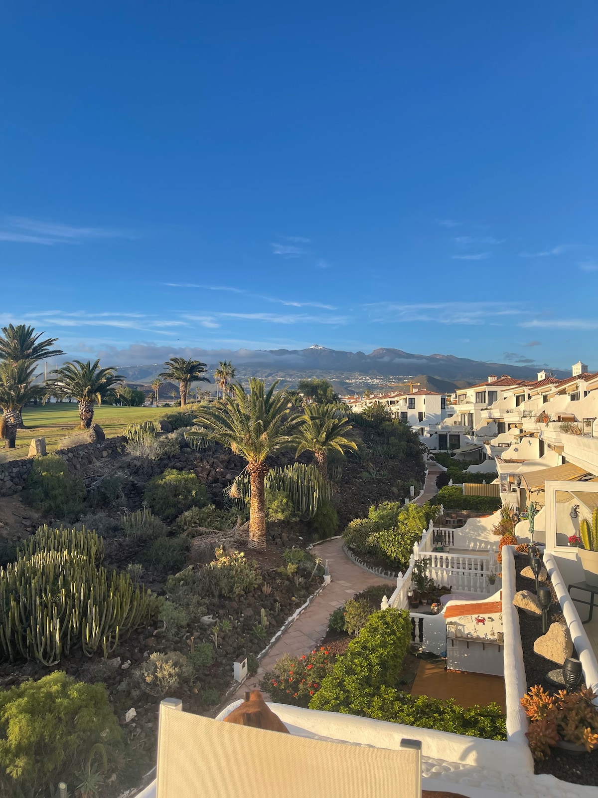 Komfortowy i nowoczesny apartament na południu Teneryfy, z pięknym widokiem na Ocean Atlantycki i pola golfowe Amarilla Golf & Country Club. Apartament położony w zielonej i spokojnej okolicy, w południowej części Teneryfy, w Golf del Sur, w zadbanym i kameralnym kompleksie mieszkaniowym z trzema basenami, w tym jednym podgrzewanym i jednym dla dzieci. Letni odpoczynek możliwy cały rok! W pobliżu pełna infrastruktura, promenada wzdłuż wybrzeża. Numer licencji turystycznej - VV-38-4-0098190