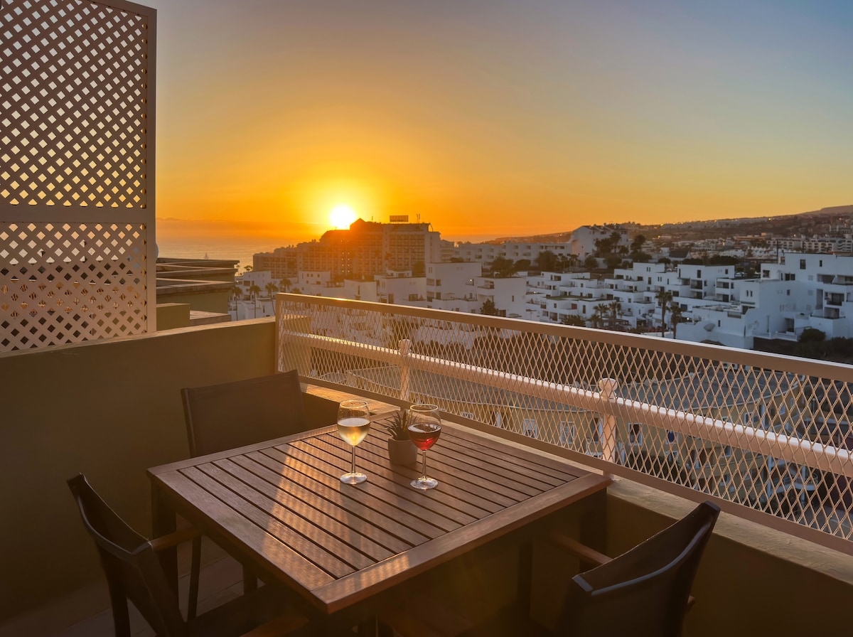 Luminoso estudio muy cerca de las mejores playas de Costa Adeje (7 min en coche/20 min a pie). Tendrás una terraza privada para tomar el sol o disfrutar de una cena romántica con un impresionante ocaso sobre el mar. ¡Reserva tus fechas ahora y disfrutarás de unas vacaciones en Costa Adeje que siempre recordarás!