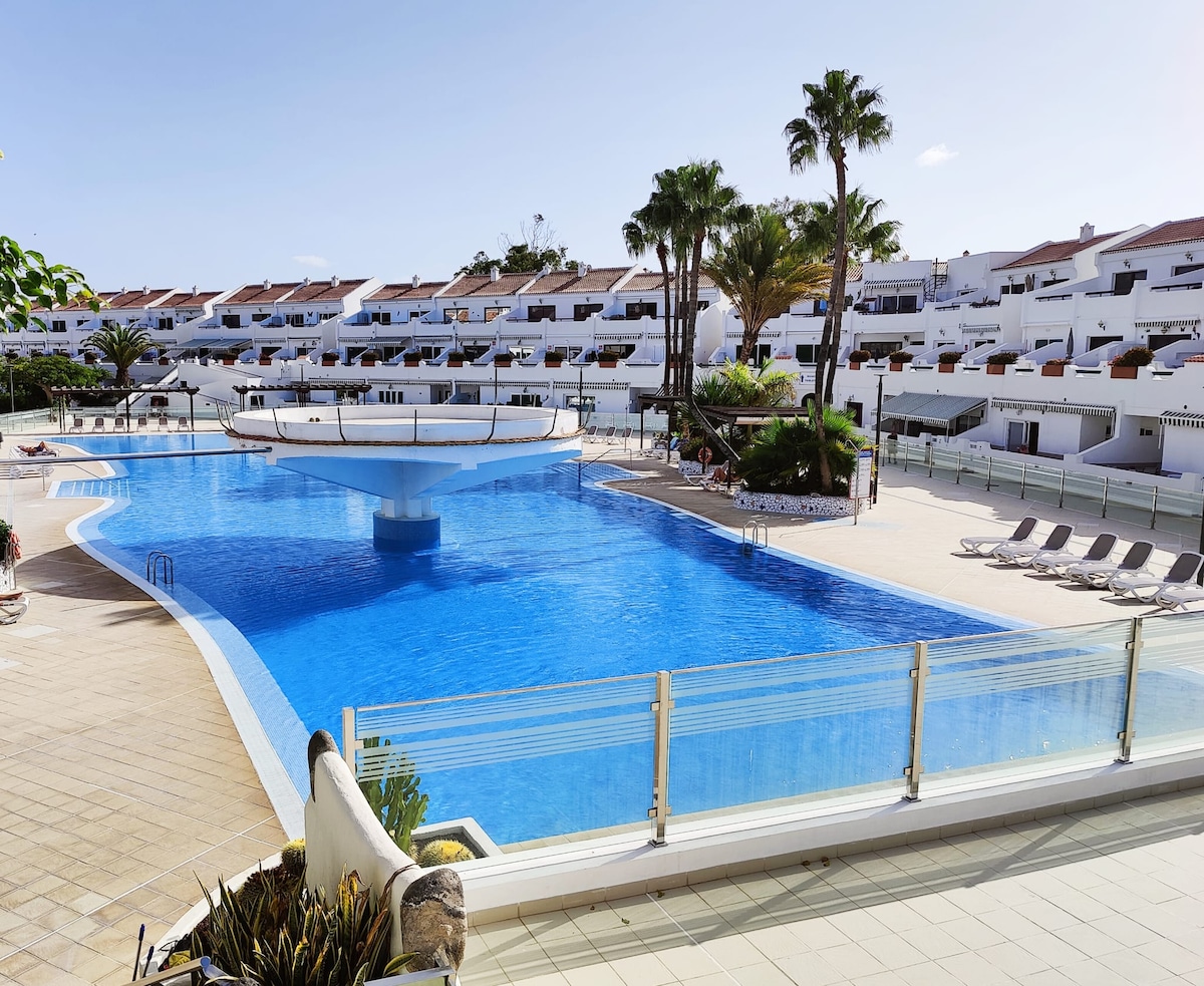 Discover our elegant designer apartment (71m² incl. terrace) in Golf del Sur, Tenerife. Ideal for couples seeking comfort and quality. Enjoy a spacious terrace with Mount Teide and sunrise views, a Weber BBQ, and Lafuma relax loungers. Equipped with air conditioning, a premium kitchen, Smart TV (intl. channels), and fiber WiFi. Access to the heated pools of our exclusive holiday complex. Self check-in and personalized service by our team with 10+ years of experience.