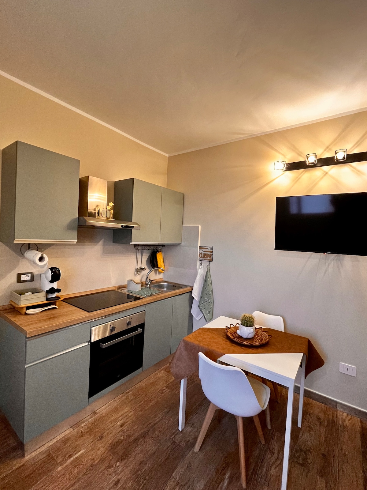 Rilassati e ricaricati in quest'oasi di quiete ed eleganza. Appartamento di 68 mq ad 1,5 km dalla stazione ferroviaria (foto tragitto) tabacchi, supermercato, farmacia ad un passo dal appartamento. bagno con box doccia, letto matrimoniale, salone con divano letto matrimoniale, cucina con ogni servizio compreso di lavatrice, 2 condizionatori , ambiante con riscaldamento in ogni stanza, dispone di acqua calda e caldaia. Possibilità di affitto ad ore minimo 8 SELF CHECK IN