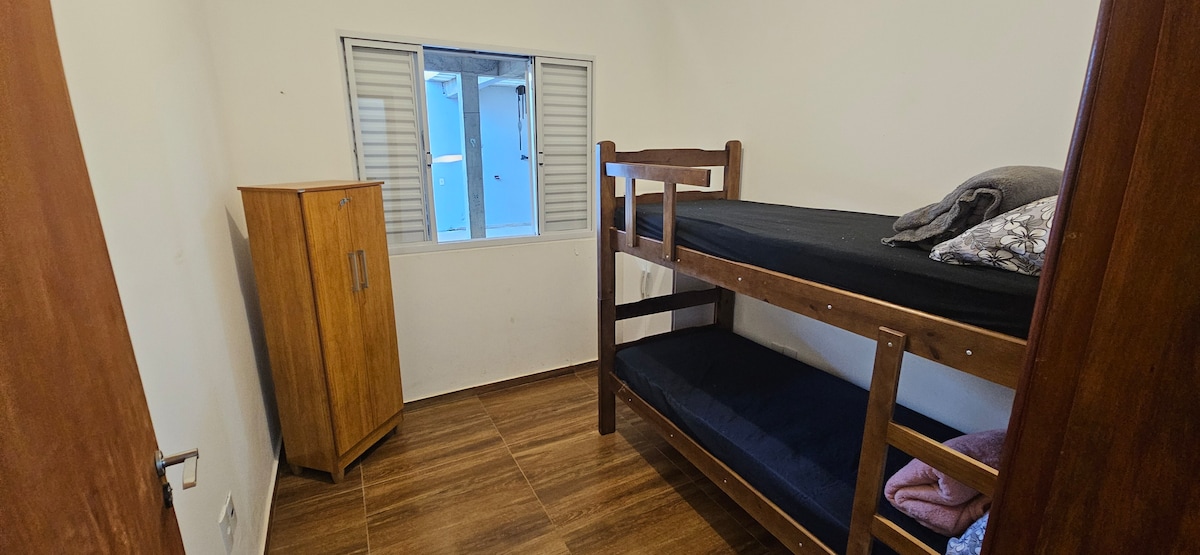 Seja bem-vindo à nossa casa aconchegante para família! Com 2 quartos, sendo 1 suíte, sala espaçosa, cozinha completa, vaga para 2 carros e churrasqueira, nosso espaço oferece o conforto que você procura. Desfrute do ar condicionado nos dois quartos para noites tranquilas. Localizado próximo a supermercados, padarias, lanchonetes e farmácias, além de fácil acesso à rodovia que conecta BH, SP e toda a região. Acomoda até 4 pessoas. Reserve agora e faça da sua viagem uma experiência memorável!