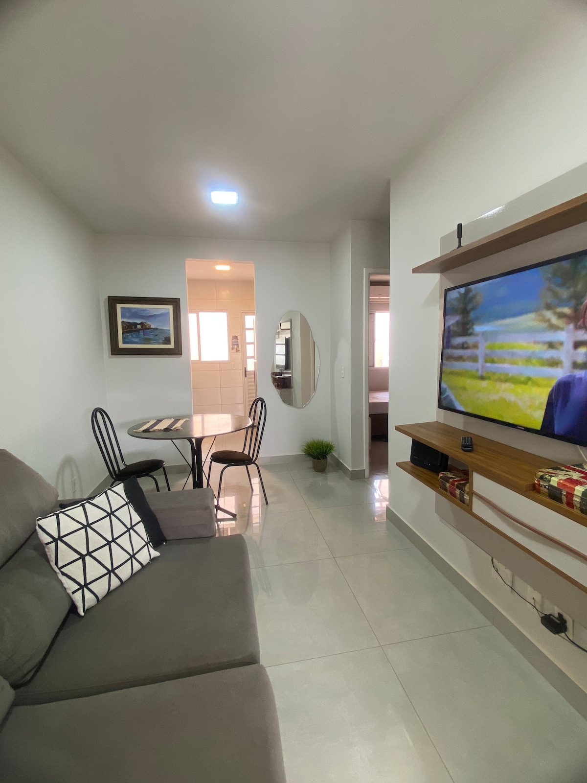 Estúdio moderno no Jardim dos Estados, com vista panorâmica e estrutura completa. Acomoda até 4 pessoas (cama queen + sofá-cama), tem ar-condicionado, Wi-Fi 300mbps, cozinha equipada, duas Smart TVs e garagem coberta privativa. No prédio: piscina aquecida, piscina com borda infinita, sauna seca, academia, coworking, salão de jogos e lavanderia (uso pago). Portaria 24h, elevador panorâmico e muito conforto em uma das melhores localizações da cidade.