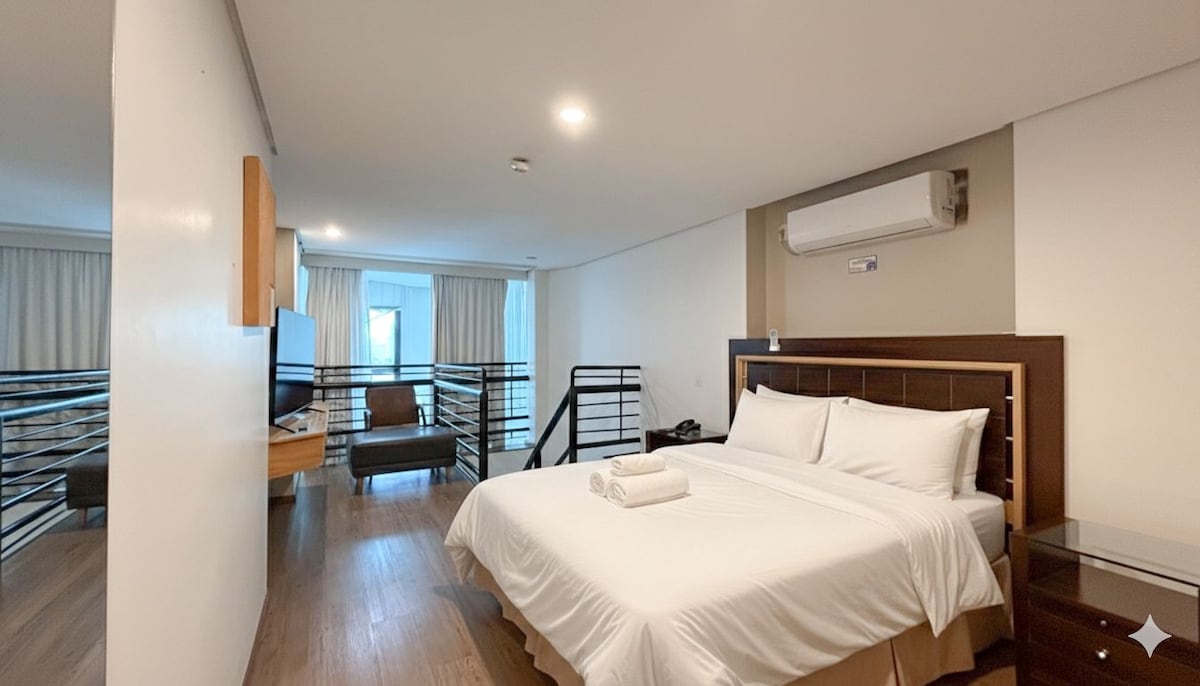 Com decoração inspirada em Bali, esse studio sofisicado possui uma atmosfera que evoca a tranquilidade das praias e florestas de Bali. Aqui você poderá descansar nos melhores enxovais da Mmartan. Possui cozinha completa, com fogão, forno elétrico, microondas, sanduicheira, liquidificador, cafeteira nespresso e chaleira elétrica. E para continuar a sensação relaxante, você poderá usufruir da vista mais linda da cidade com piscina de borda infinita no 20º andar. Apaixone-se por essa hospedagem!