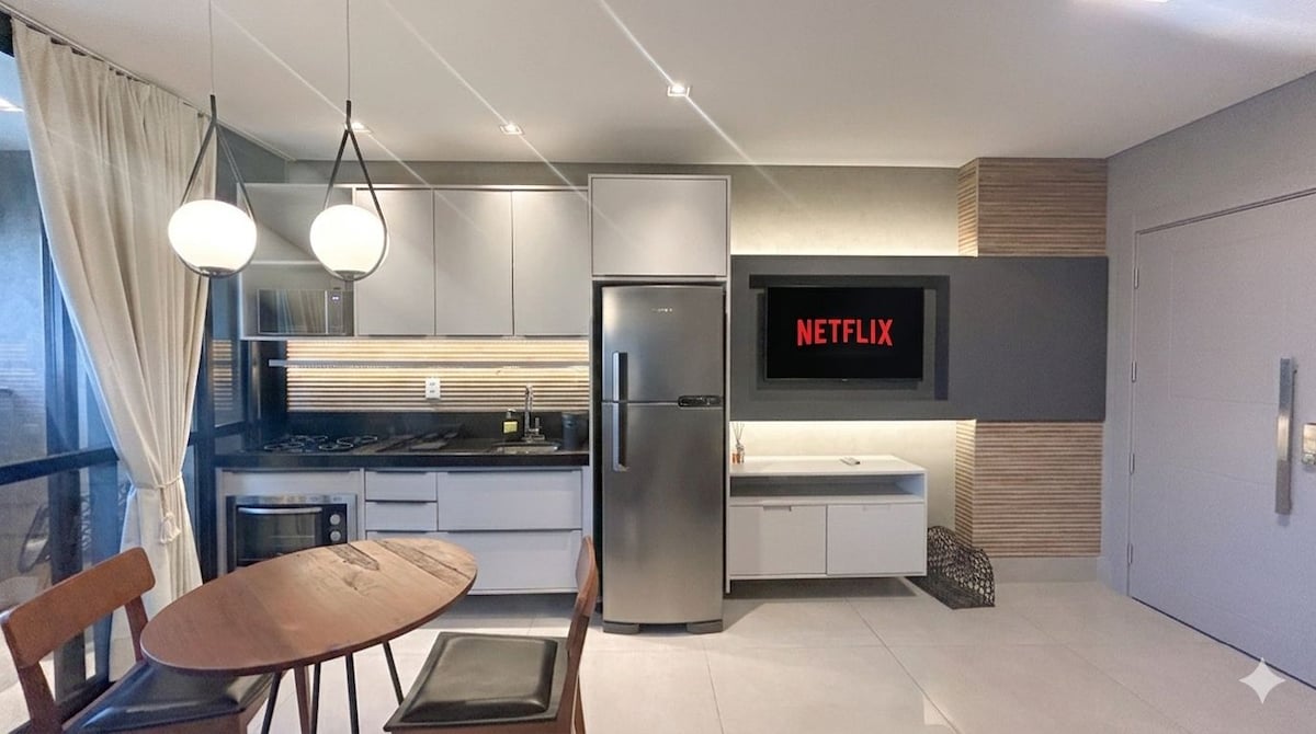 Seja bem-vindo ao Stay Mont Blanc. Um apartamento moderno, elegante e integrado, onde o conforto encontra o design. Com cozinha completa, Wi-Fi rápido, móveis assinados e ambientes integrados, você tem praticidade e estilo em cada espaço. Relaxe com o conforto de duas Smart TVs, dois ar-condicionados, cama queen, closet amplo e um banheiro clean, pensado para o seu bem-estar do início ao fim da estadia. O Stay Mont Blanc é ideal para uma estadia premium no centro da cidade.