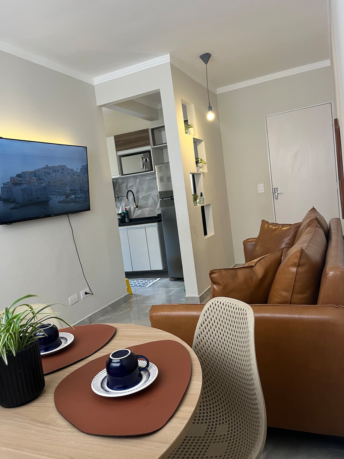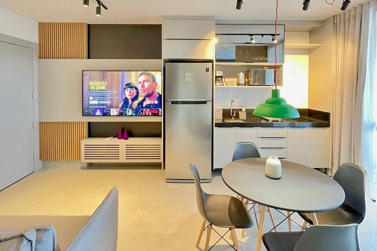 🏠 Informações do imóvel A sala é composta por sofá, TV, e mesa para refeições, ideal para momentos de descanso e praticidade. O quarto possuem cama de casal e banheiro privativo, garantindo conforto e privacidade. A cozinha é totalmente equipada, com: Fogão cooktop Geladeira Air fryer Pratos, talheres e jogo de panelas completo Tudo pensado para oferecer conforto e praticidade durante a sua estadia.