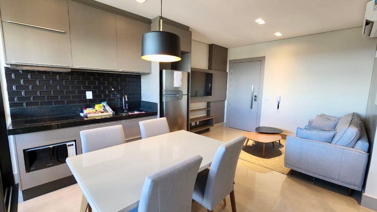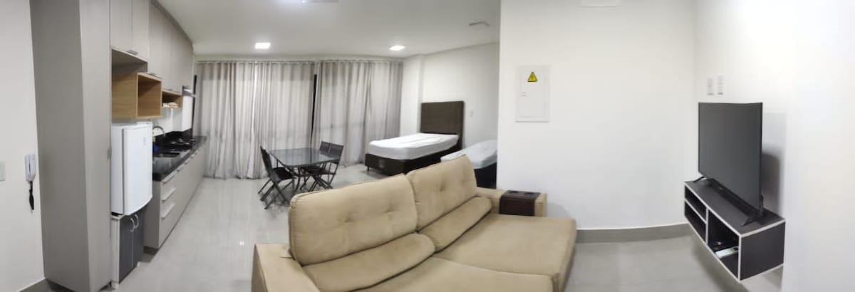 Loft moderno de 32 m² com decoração elegante e automação Alexa, oferecendo uma experiência inteligente e confortável, proximo ao Hospital Regional e ao Supermercado Comper Totalmente climatizado, com ar quente e frio, Wi-Fi 7 de alta velocidade e smart TVs. Ideal para viagens a trabalho, casais ou pequenas famílias. Acomoda até 3 hóspedes com conforto e segurança. Inclui berço para criança até 2 anos, self check-in e enxoval completo. Conecte-se, relaxe e sinta-se em casa!