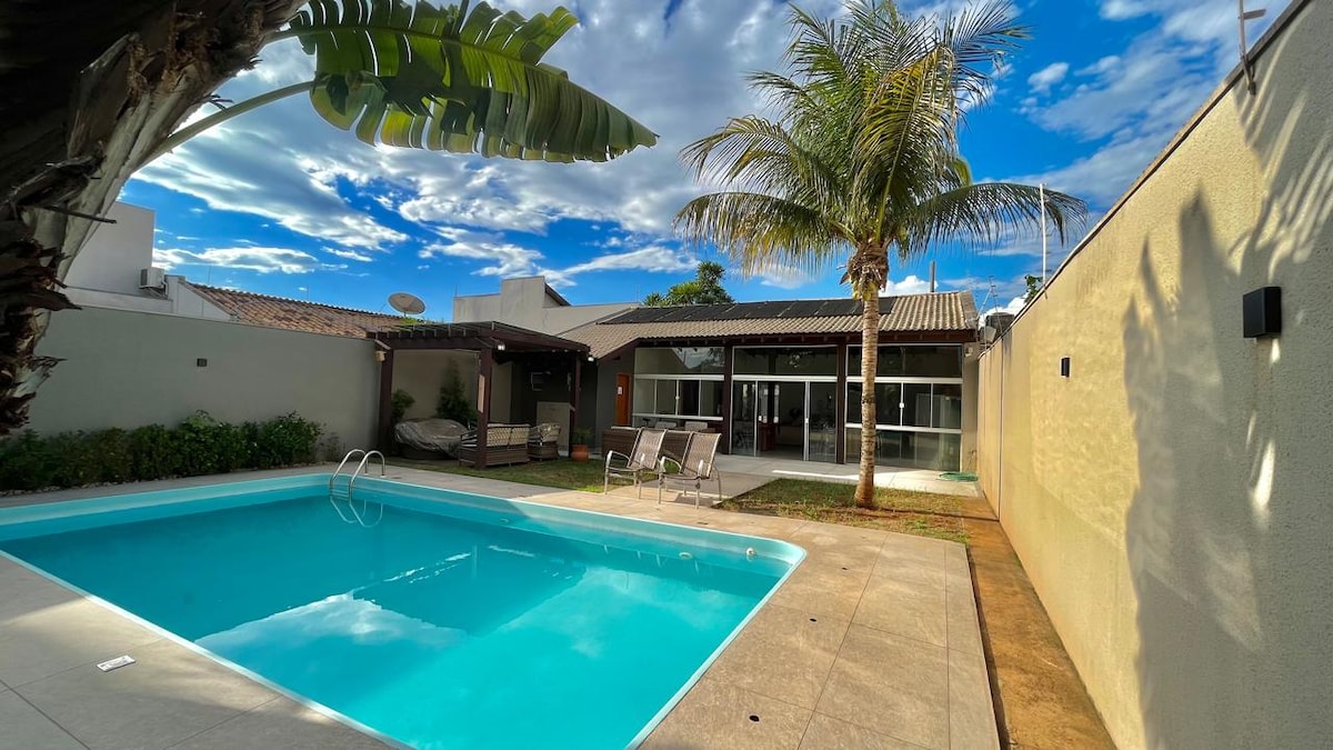 Casa muito tranquila e segura, com ar condiconado, com 1 suite e dois quartos em cada quarto ventilador de teto com controle remoto. Equipada com internet, microondas, liquidificador, ferro de passar roupa, e equipamentos de cozinha e garagem para veiculos. Excelente localização proxima a Hipermercados, lojas, loterica e posto de combustivel.