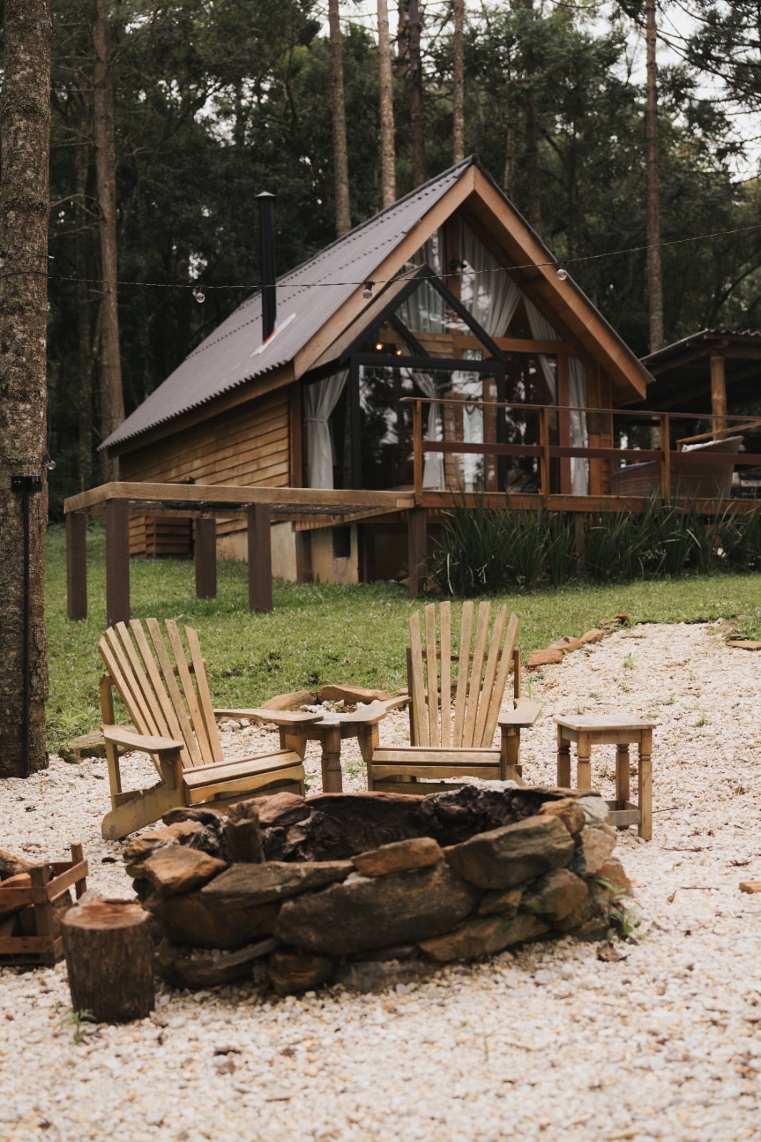 Uma cabana A frame imersa na mata nativa e nos parreirais de uma família de origem italiana. Projetada para acordar com o som dos pássaros e dormir com o barulho da água. O ponto alto fica logo na chegada, o deck fica em cima de uma cachoeira. A cozinha é completa com utensílios de ótima qualidade. O banheiro tem vista para a mata, banheira de imersão e amenities L'Occitane. Todos os cômodos são decorados nos mínimos detalhes. Ideal para relaxar e se colocar no compasso certo da vida.